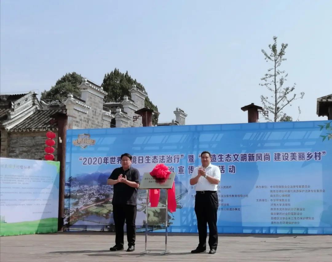 值第49个世界环境日来临之际,6月4日上午, 由南京市江宁区司法局、南京市江宁区法治宣传教育领导小组、南京市律师协会、南京市江宁区东山街道办事处主办,中华环保联合会法律专家委员会、南京市律协环境与资源保护法律专业委员会、南京同心律师团承办的“2020年世界环境日生态法治行”暨“打造生态文明新风尚 建设美丽乡村”法治宣传服务活动在南京江宁区举行。活动旨在宣传生态文明理念,增强群众环保法律意识,促进美丽乡村建设。南京市江宁区司法局局长刘春明、中华环保联合会法律专家委员会秘书长、江苏中虑律师事务所主任韩旗、南京市律协环资委主任祝红、南京市农业农村局一级调研员王彦君、河海大学法学院教授晋海等出席活动。