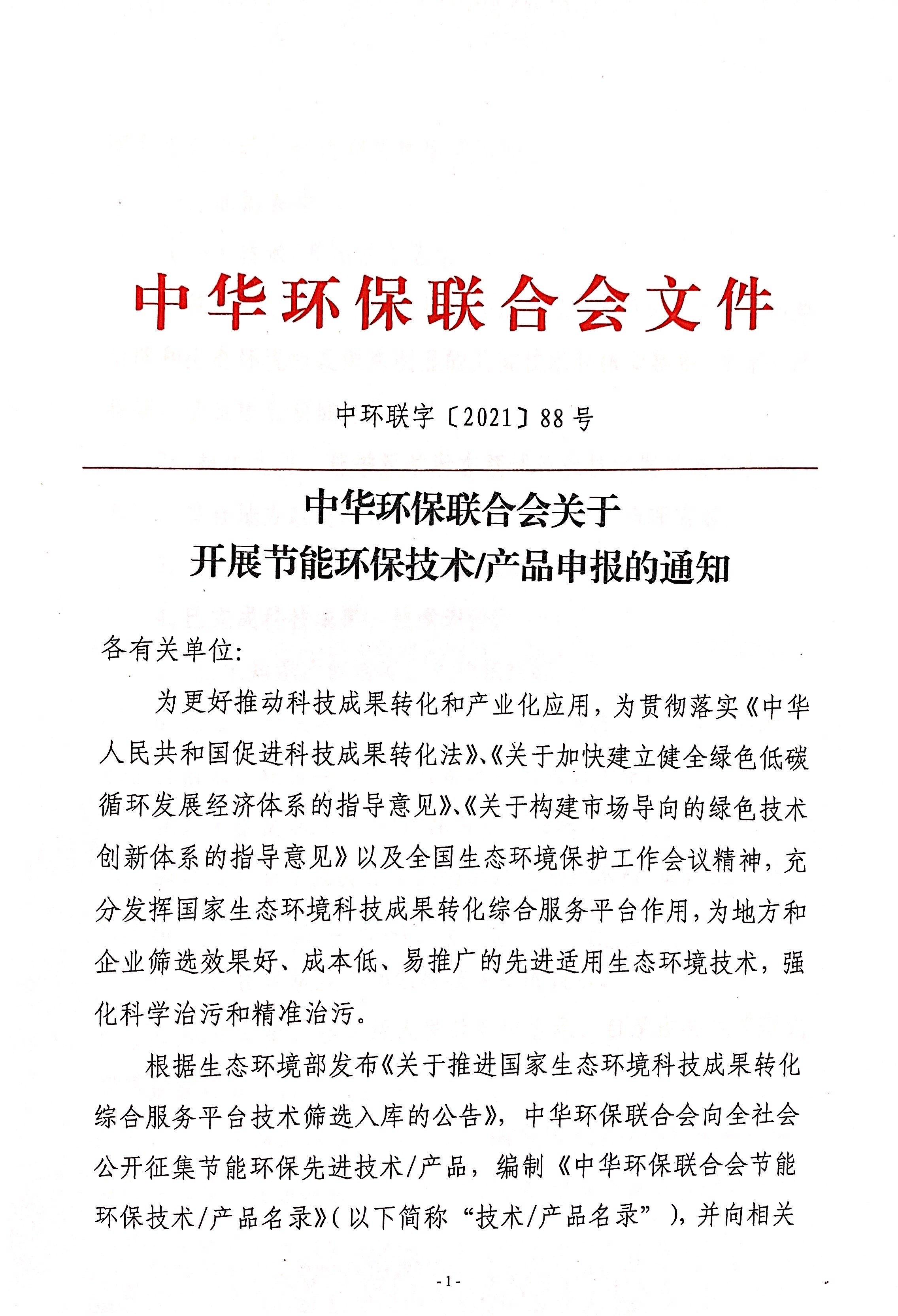 关于开展节能环保技术/产品申报的通知