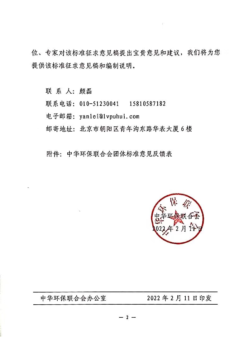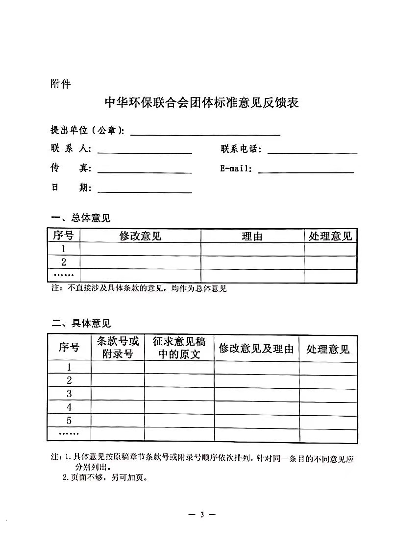 中华环保联合会关于《塑料包装替代材料减排量核算准则》团体标准征求意见的函