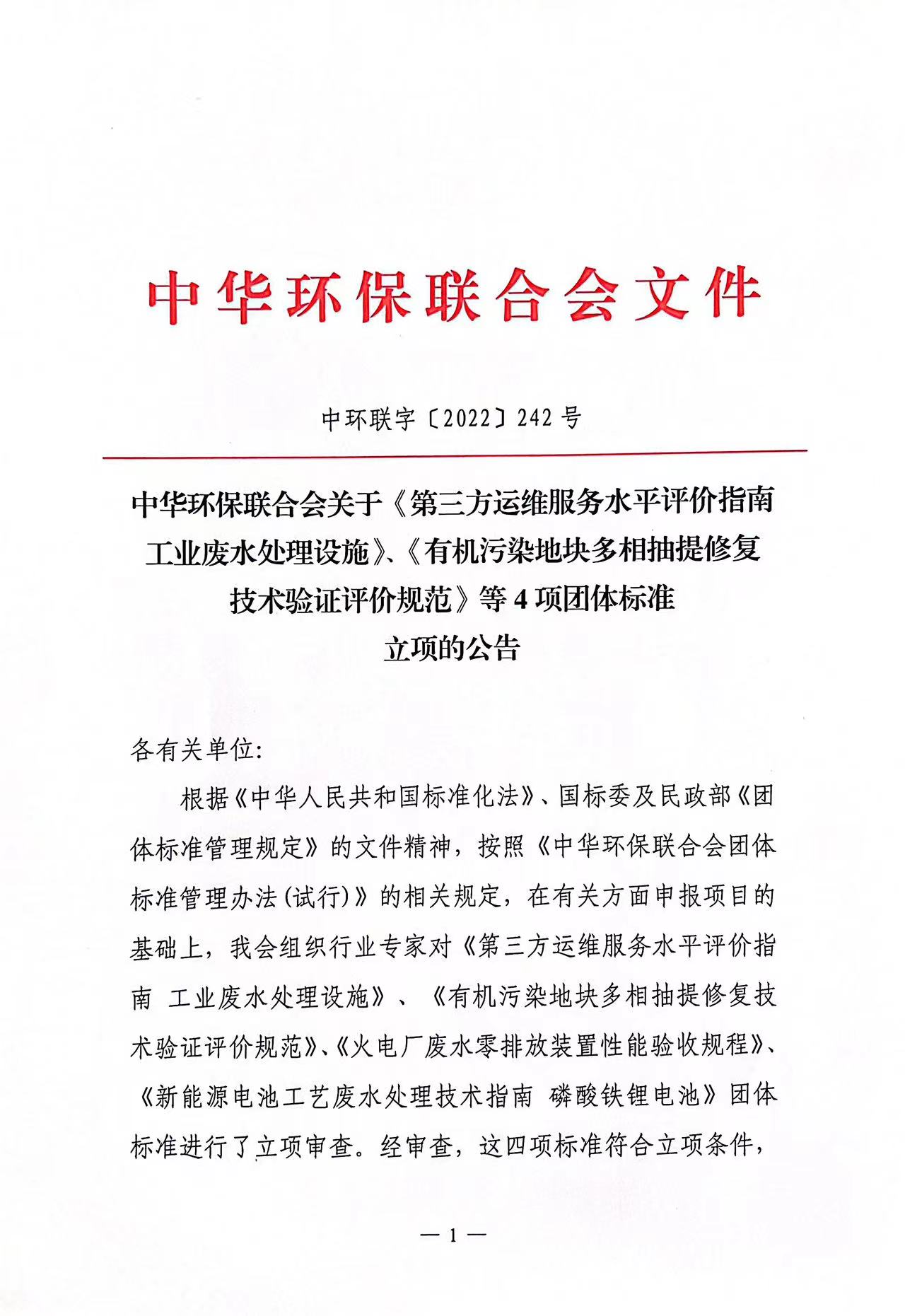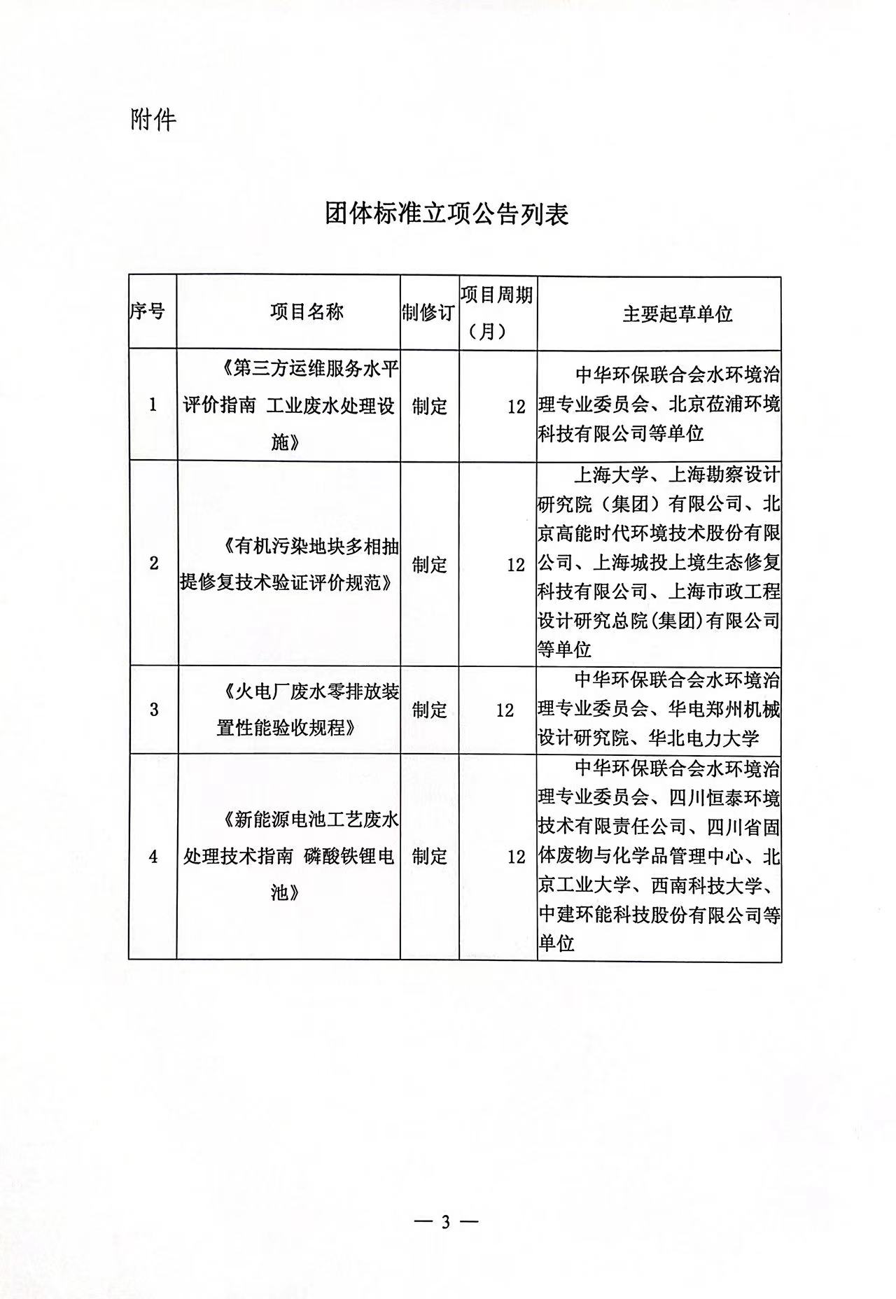 关于《第三方运维服务水平评价指南 工业废水处理设施》、《有机污染地块多相抽提修复技术验证评价规范》等4项团体标准立项的公告