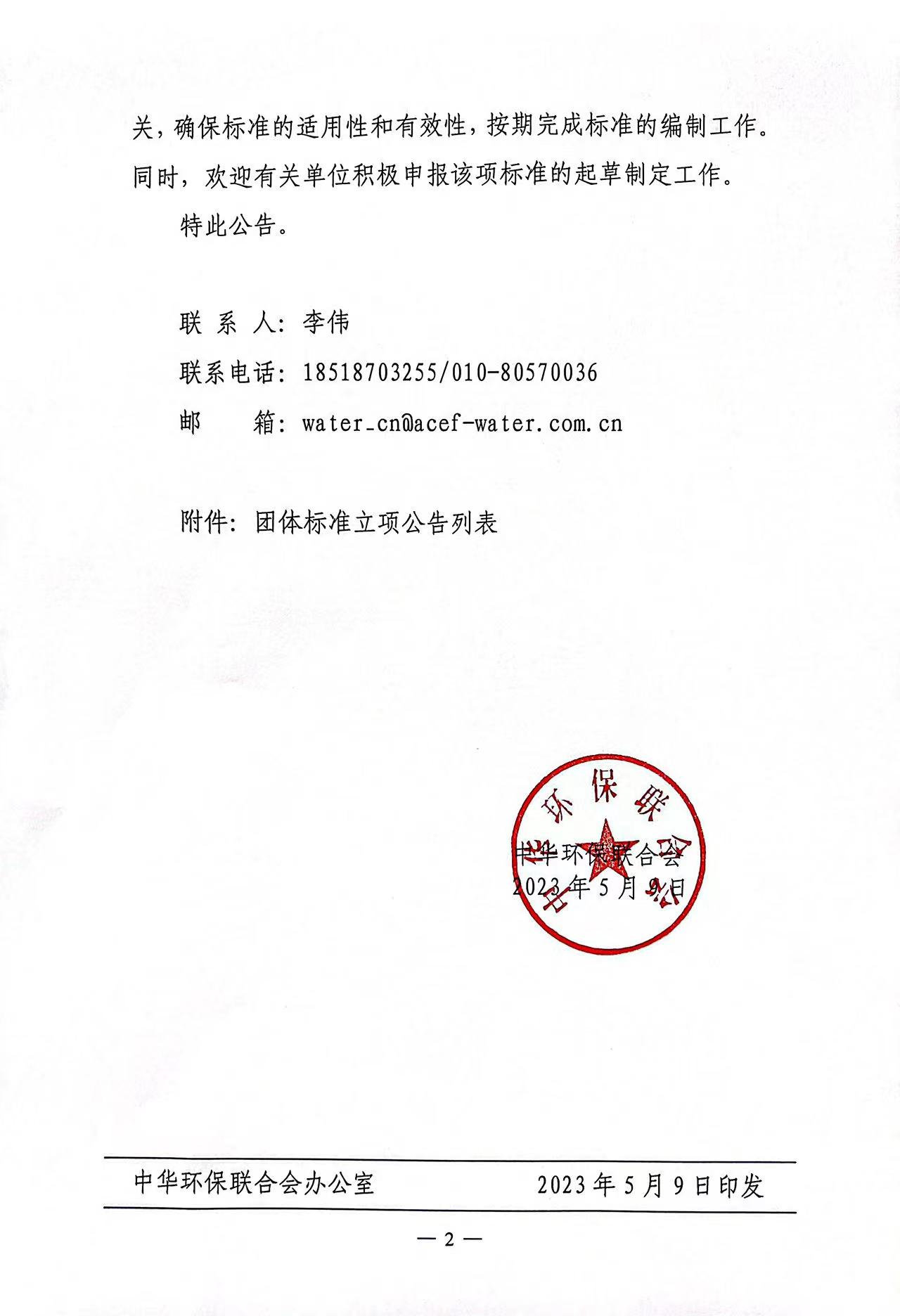 关于开展 2023年度中华环保联合会