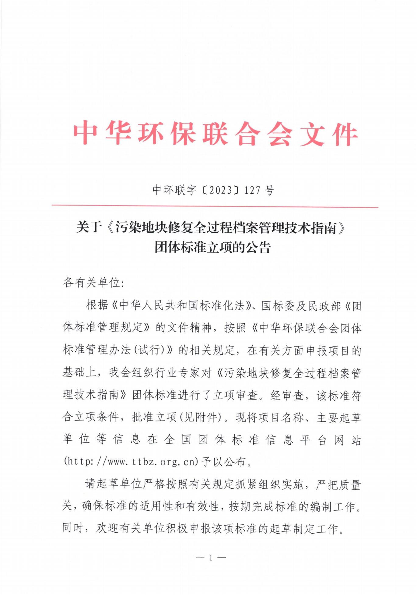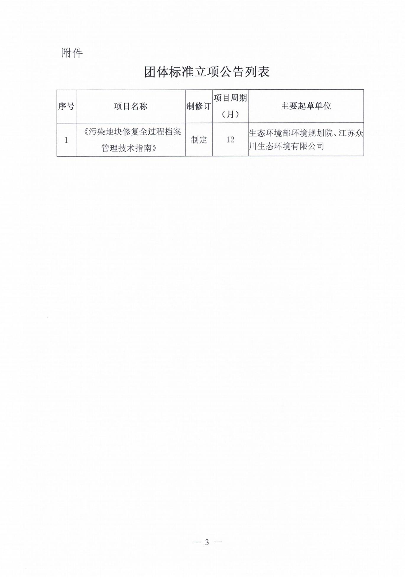 关于《污染地块修复全过程档案管理技术指南》团体标准立项的公告