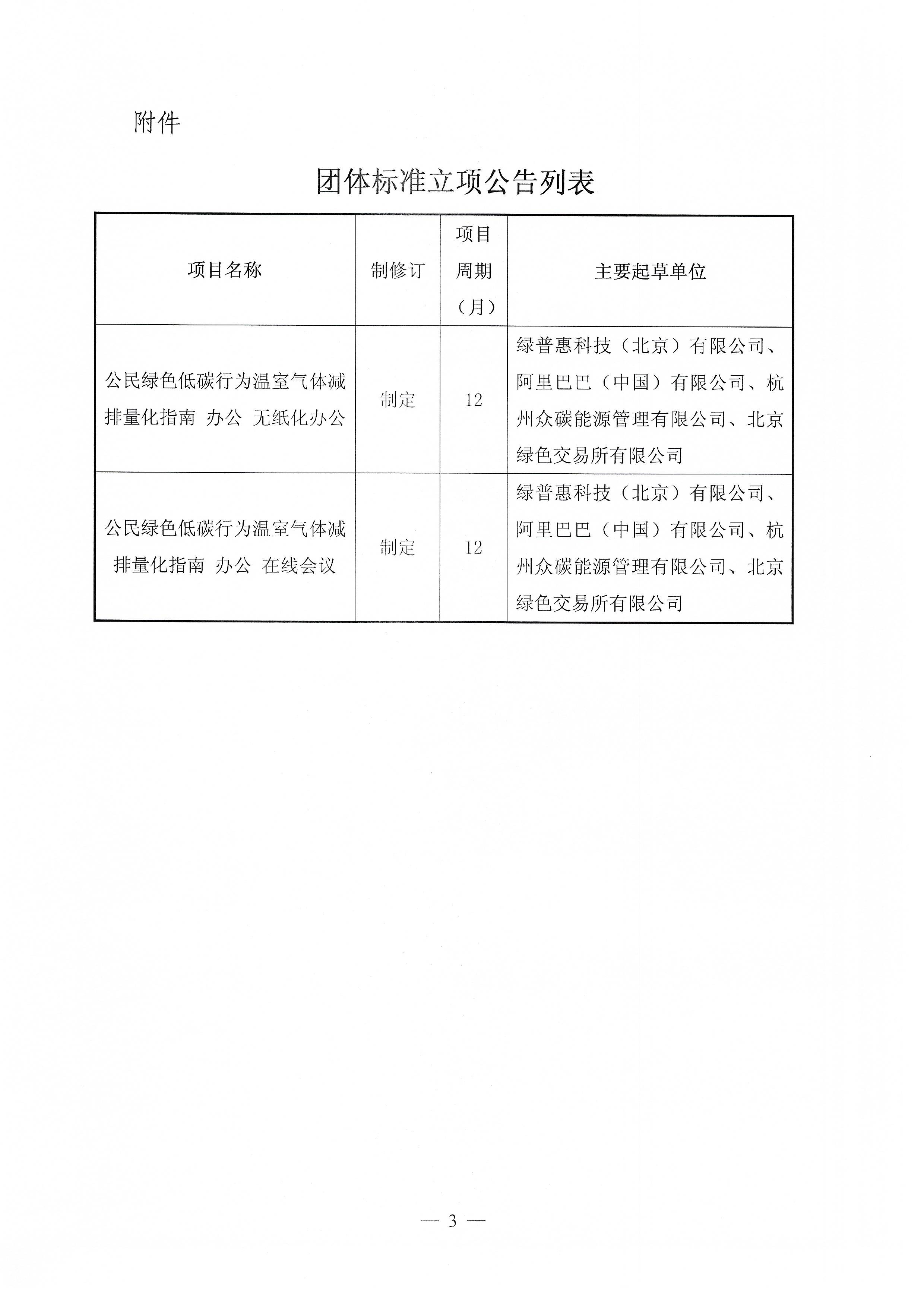 关于《公民绿色低碳行为温室气体减排量化指南 办公 无纸化办公》《公民绿色低碳行为温室气体减排量化指南 办公 在线会议》两项团体标准立项的公告
