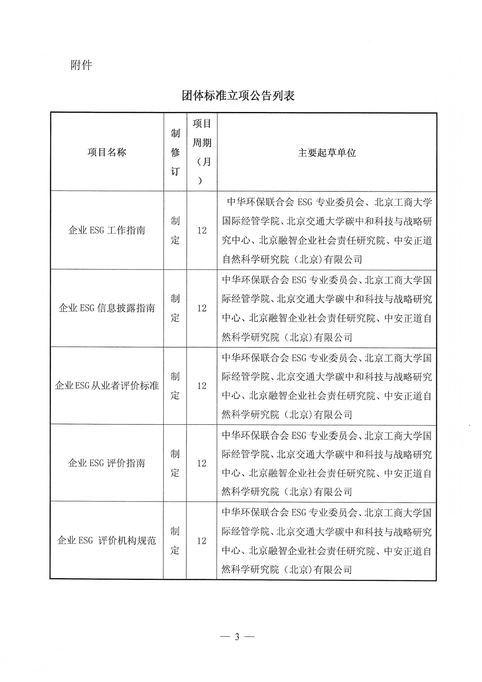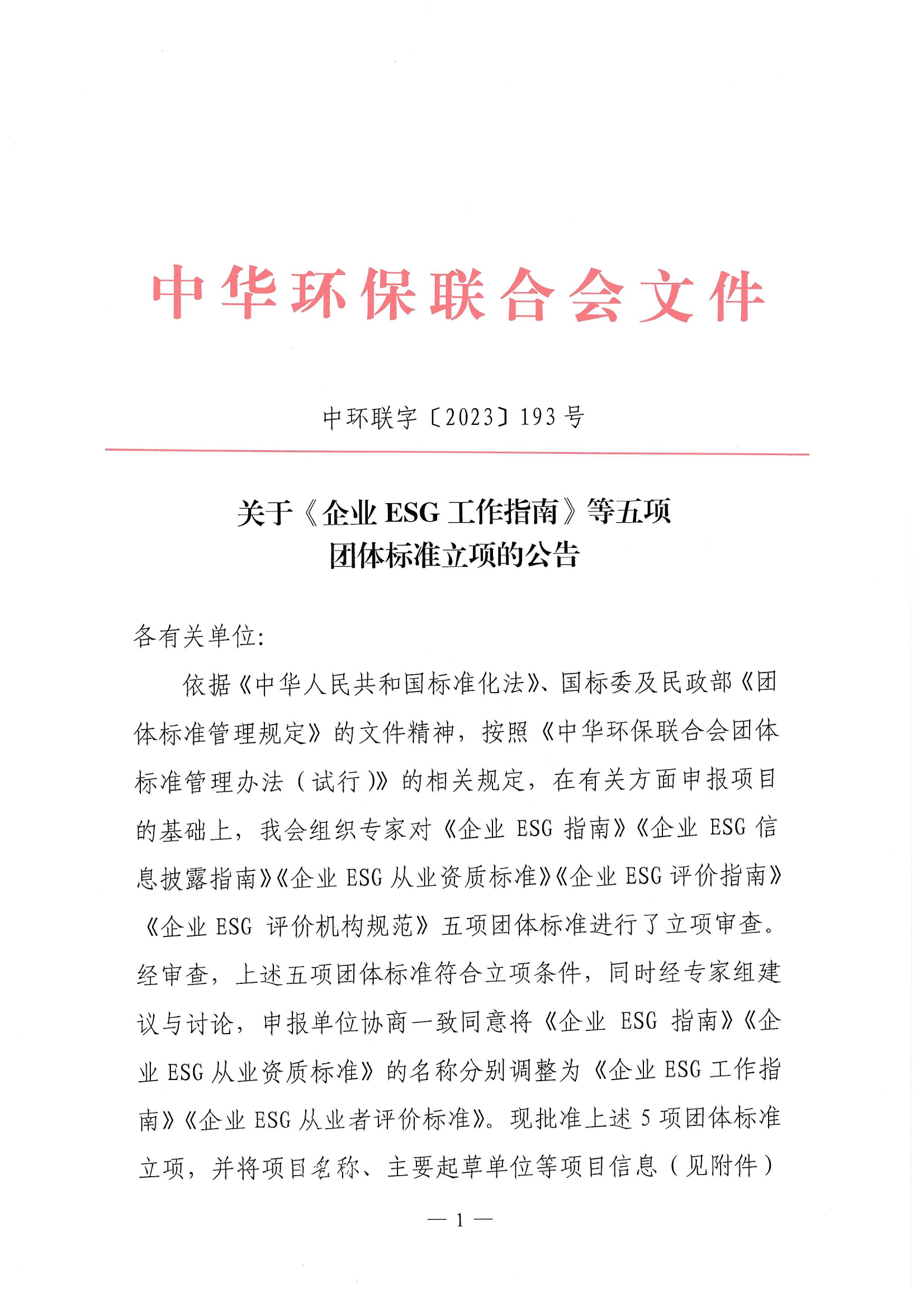 关于《企业ESG工作指南》等五项团体标准立项的公告