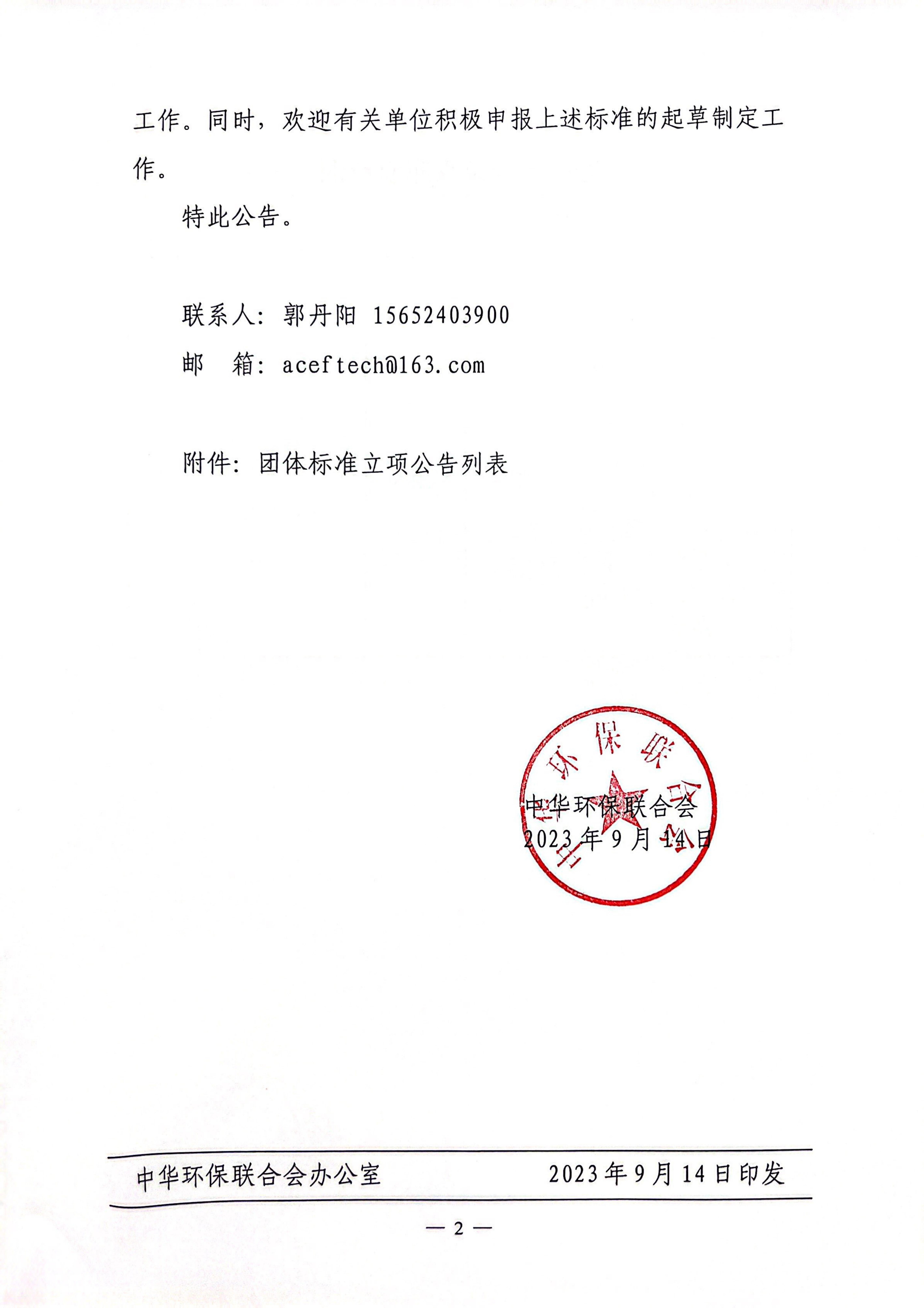 关于开展 2023年度中华环保联合会