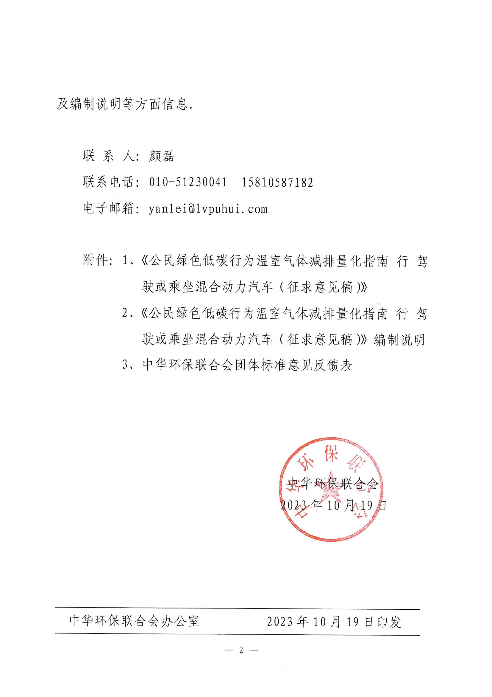 关于《公民绿色低碳行为温室气体减排量化指南 行 驾驶或乘坐混合动力汽车》团体标准 征求意见的函