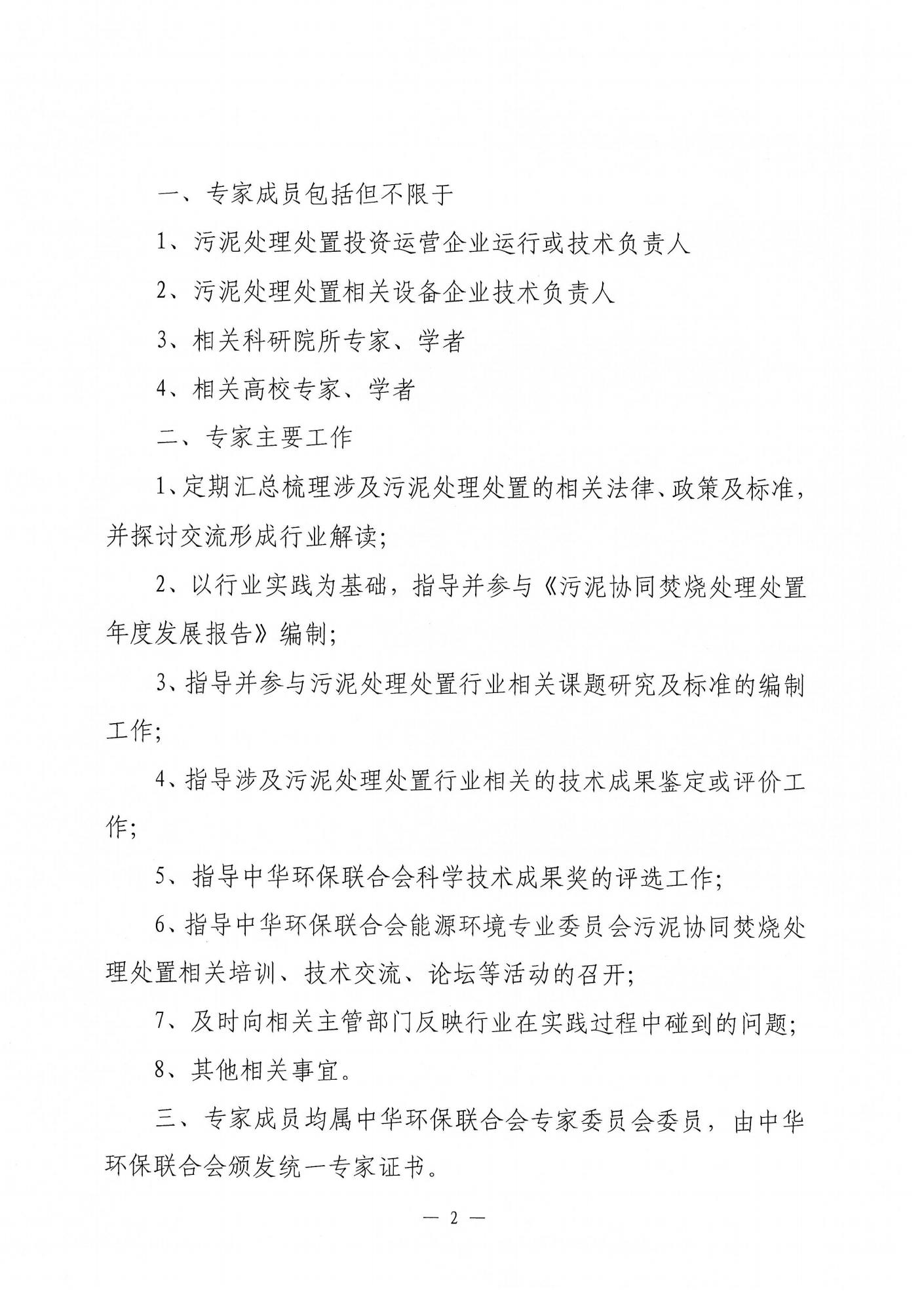 关于征集中华环保联合会污泥协同焚烧处理处置专家的函