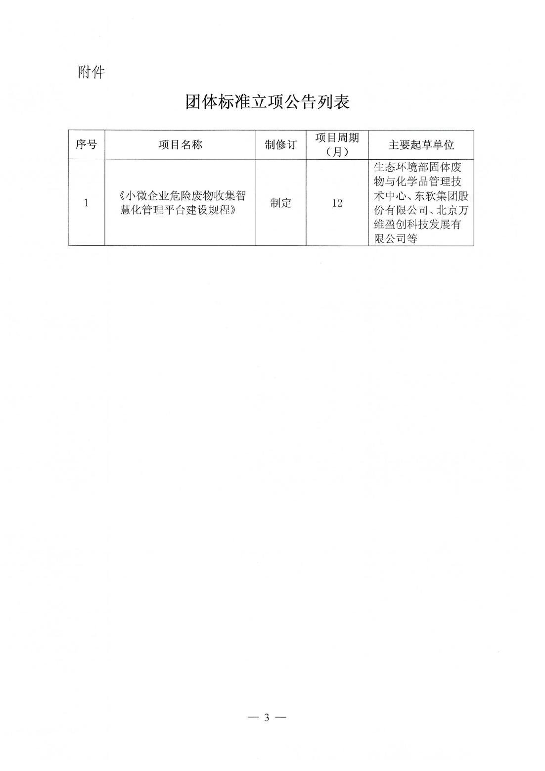 关于《小微企业危险废物收集智慧化管理平台建设规程》团体标准立项的公告