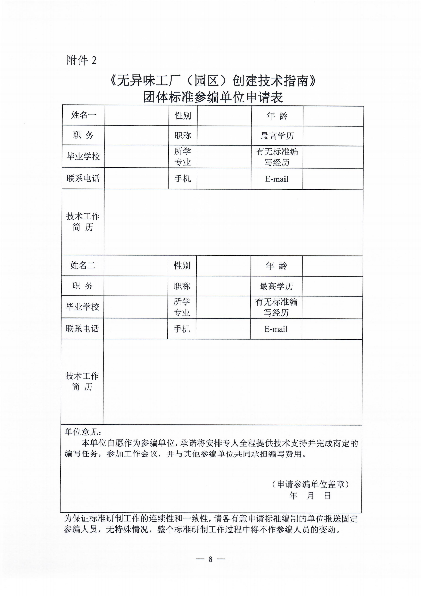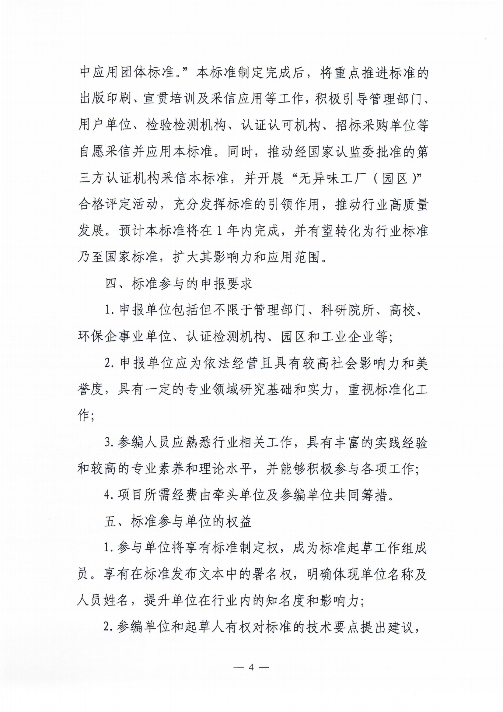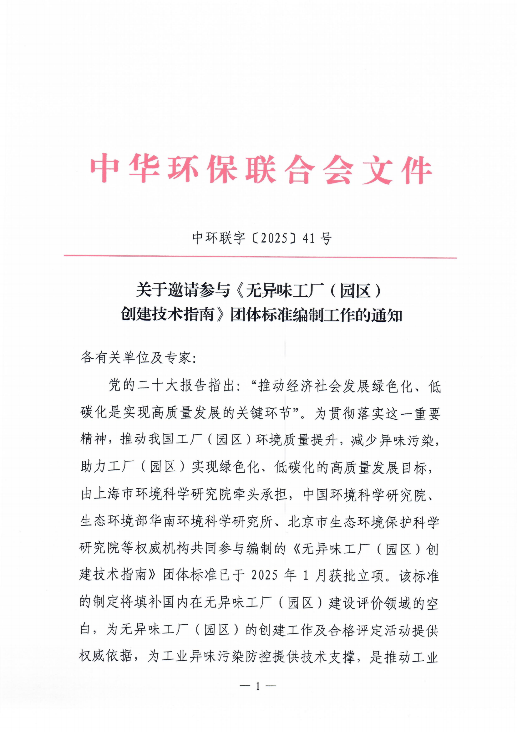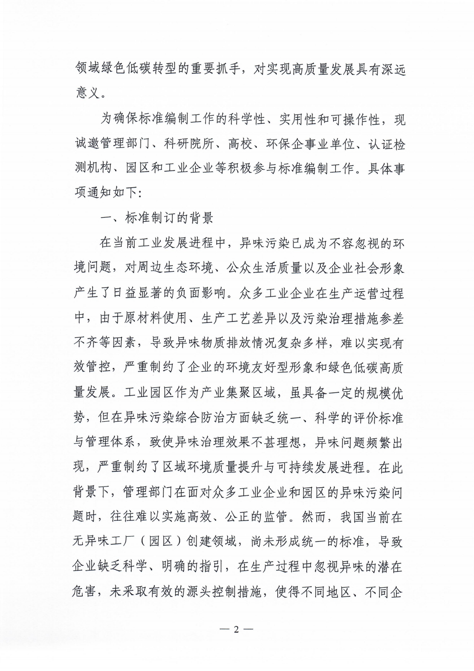 关于邀请参与《无异味工厂(园区)创建技术指南》团体标准编制工作的通知