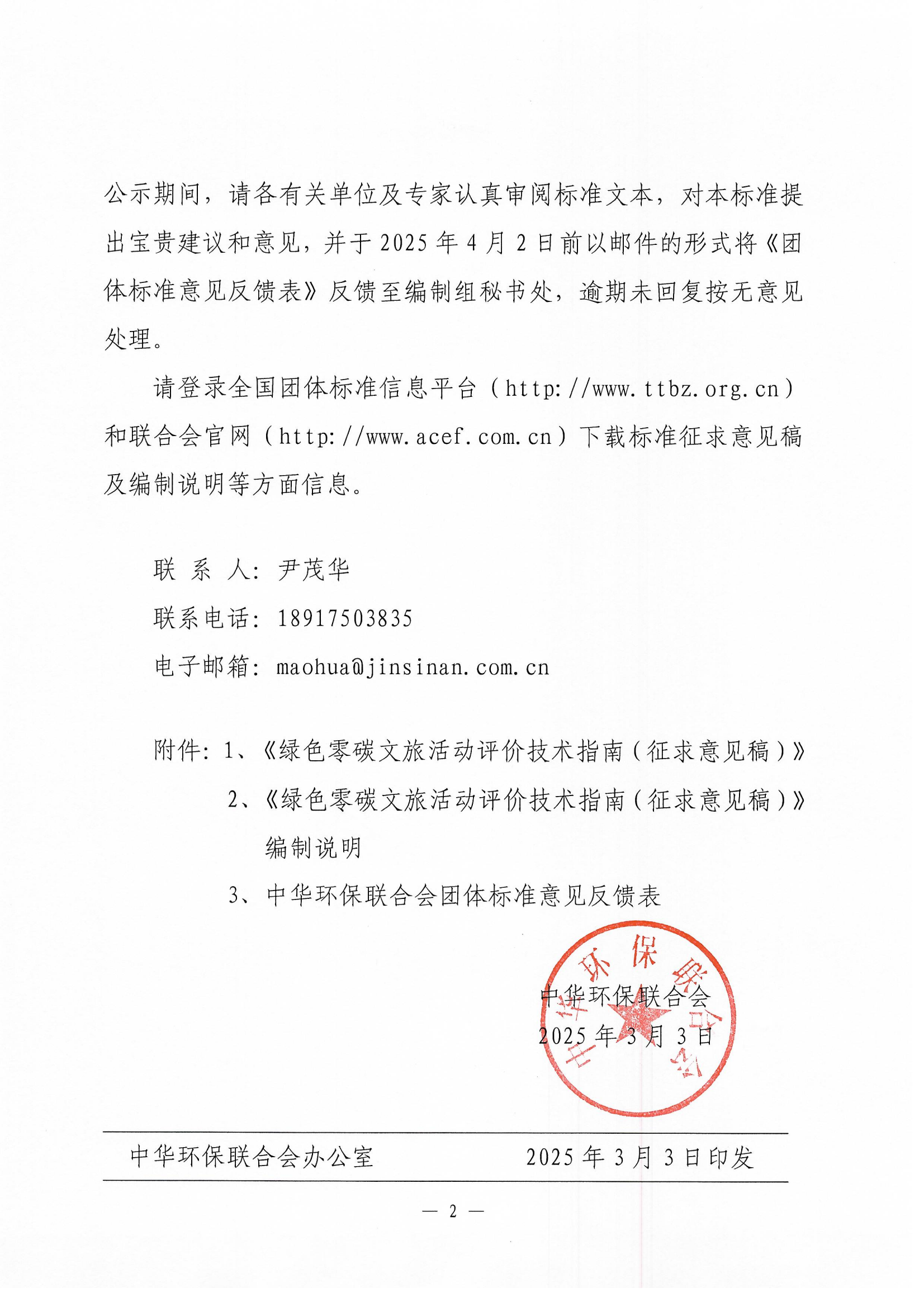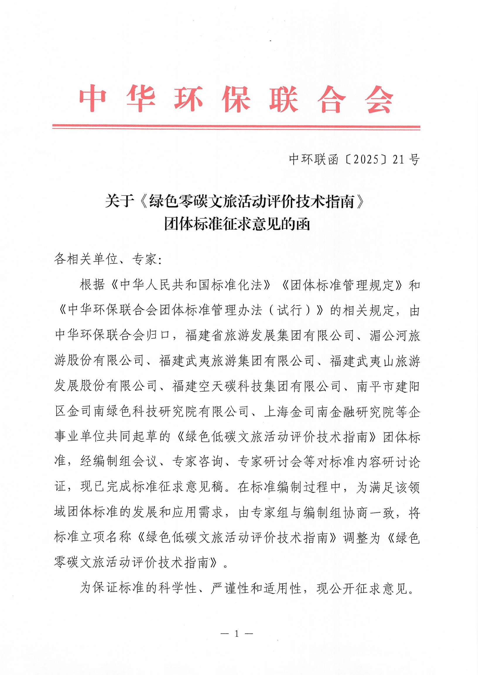 关于《绿色零碳文旅活动评价技术指南》团体标准征求意见的函