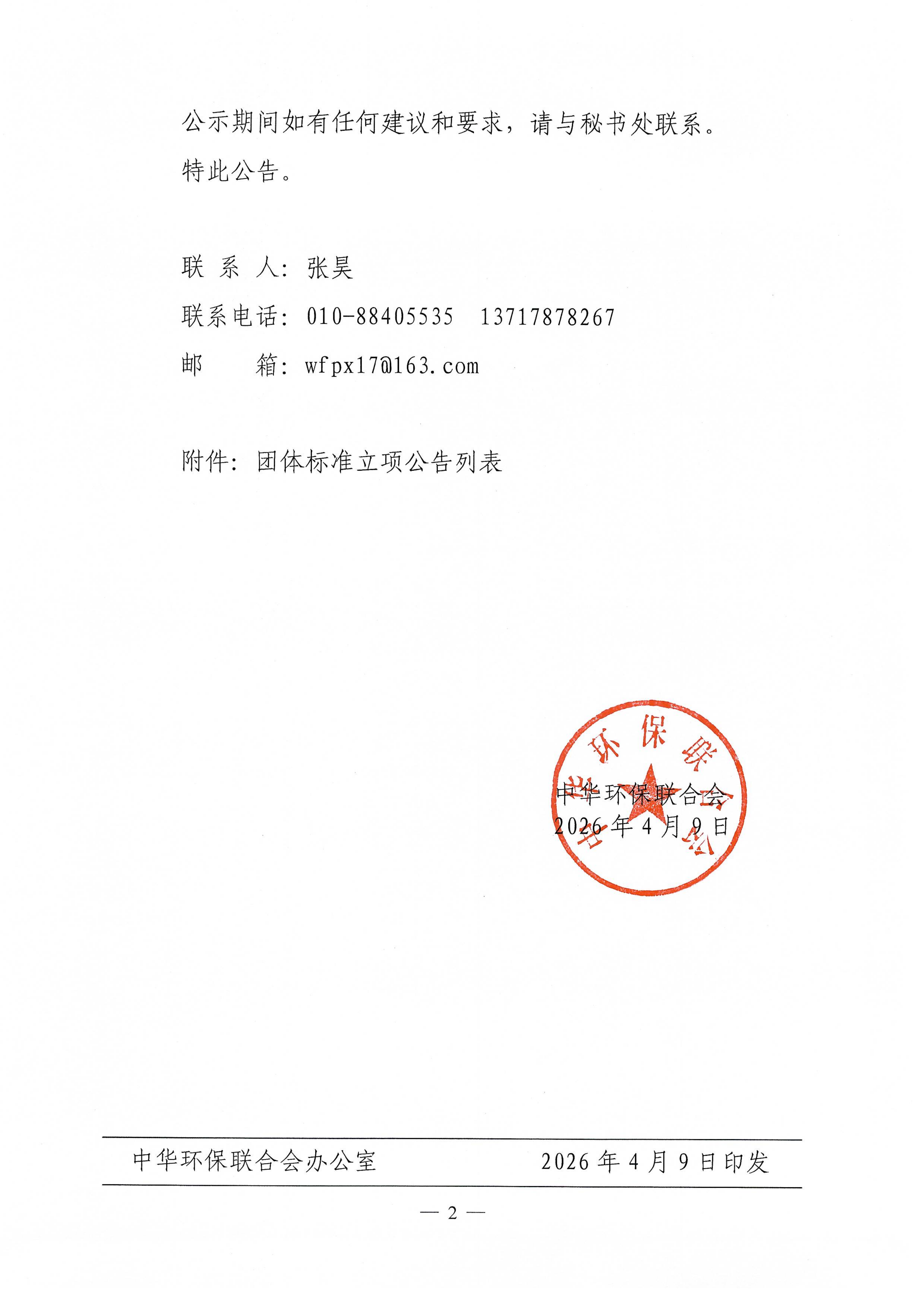 中华环保联合会关于公示2023年度