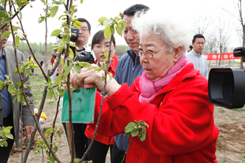 4月15日,正值世界葡萄博览园开园之际,由中华环保联合会主办的“热爱自然、播种绿色、拥抱春天——纪念第47个世界地球日,‘我为家园添绿色’公益植树活动”在延庆区张山营镇世界葡萄博览园举行。十届全国人大常委会副委员长、全国妇联原主席顾秀莲,八一电影制片厂演员剧团原团长、著名表演艺术家田华,全国政协人口资源环境委员会巡视员卫宏,国家体育总局乒乓球羽毛球运动管理中心副主任李振国、北京市延庆区副区长张远等领导以及志愿者200多人参加此次活动,完成植树300多棵。