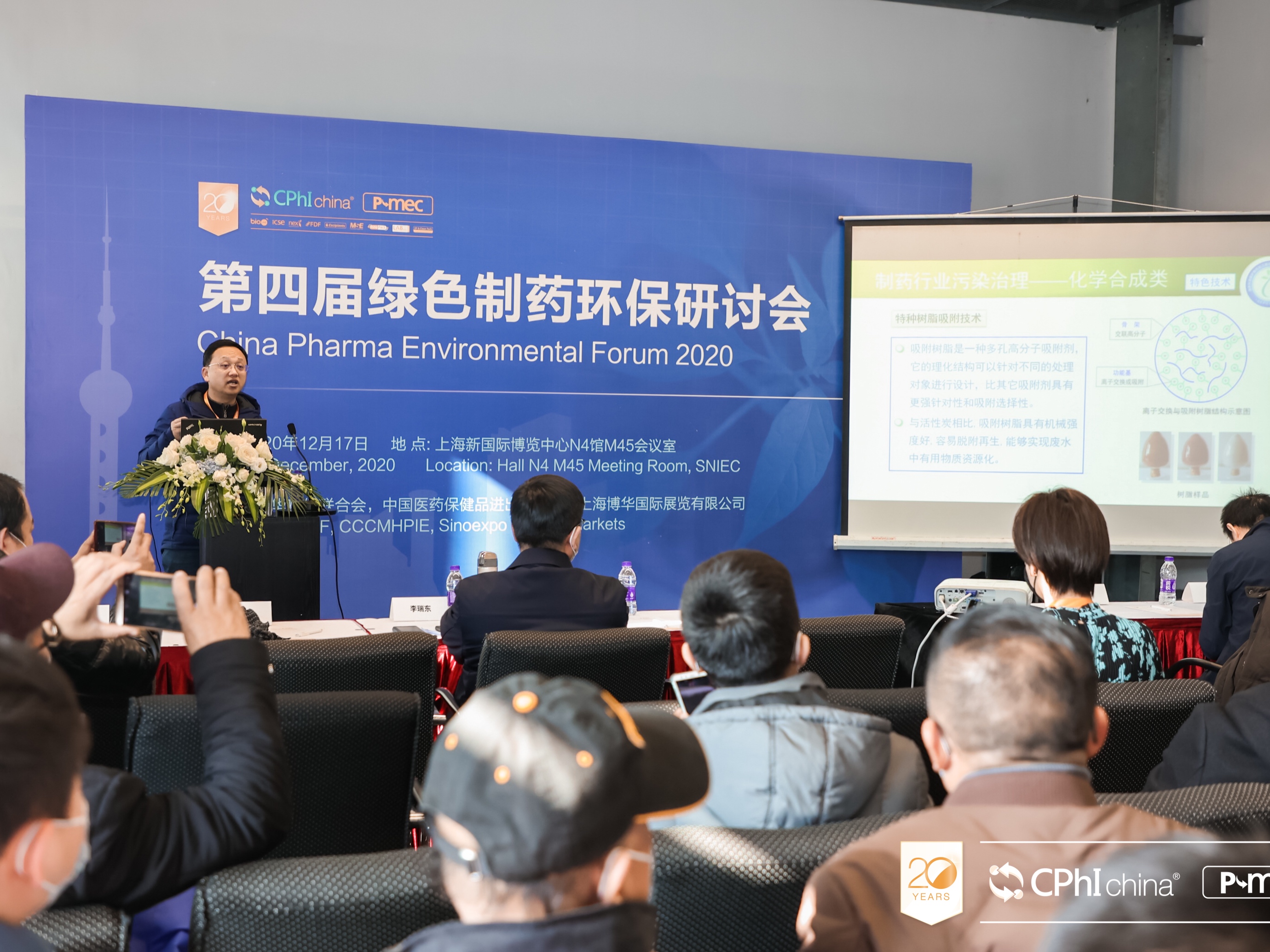2020年12月17日,由中华环保联合会、中国医药保健品进出口商会、上海博华国际展览有限公司主办的第四届绿色制药环保研讨会在上海召开,中华环保联合会副秘书长李瑞东、中国医药保健品进出口商会副会长王茂春出席研讨会并致辞,生态环境部土壤与农业农村生态环境监管技术中心李松研究员、南京大学环境学院环境工程系教授、博士生导师张炜铭教授、华东理工大学党委书记修光利教授、中国循环经济协会危废委员会秘书长周跃分别做了精彩的演讲,并与来自制药企业环保安全部门,EHS部门,质量管理部门,设备采购部门的负责人,以及环保技术设备公司的工程师专家,产品经理等50余人展开了研讨交流。