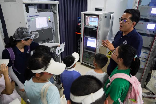 8月12日下午,广东省深圳生态环境监测中心站(以下简称监测中心站)以“绿水青山就是金山银山”为主题举办8·15全国生态日环保设施公众开放活动。15组亲子家庭大手拉小手与生态环境监测设施亲密接触,详细了解深圳生物多样性现状、空气自动监测站和城市生态监测站点运作方式。