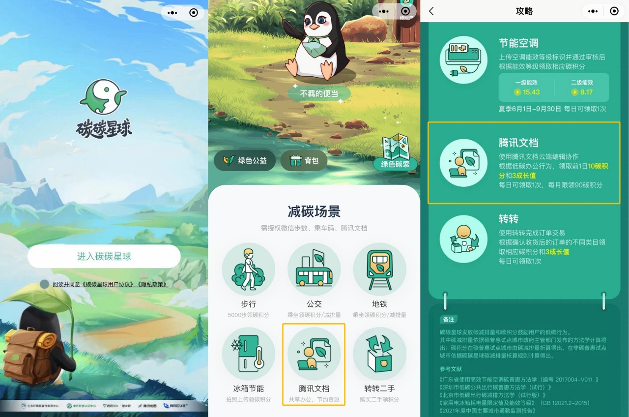 如今,用在线文档,除了能减碳,还能获得低碳奖励!在今年8月,腾讯文档已正式登陆“碳碳星球”,将减碳价值量化为碳碳星球碳积分,让每一位用户的云端减碳实践都能收获正面激励,鼓励大家用绿色生活、办公方式守护我们的美好家园。