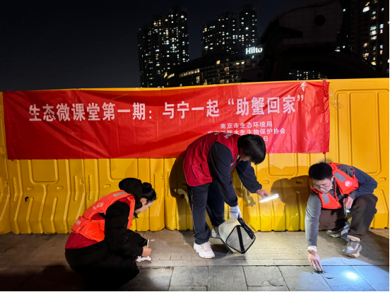 如何让“蟹宝宝”顺利回家?“我们发现这一问题后,联合多个部门紧急应对,用麻布、绳网搭成‘蟹梯’,为‘蟹宝宝’们搭建起了一条生命通道。”郝旭玲说道,同时南京还开展“助蟹回家”公益行动,招募更多的学生、市民朋友们通过人工捡拾的方式,身体力行地加入保护“蟹宝宝”顺利回家的任务中来。