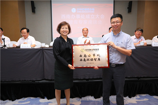 会上,中华环保联合会副主席谢玉红宣读西南办事处成立文件,并为西南办事处授牌。在随后举行的西南环保智库专家座谈会上,谢玉红向西南环保智库首批专家颁发了聘任证书。会议和座谈结束后,与会领导嘉宾还实地参观了西南办事处。