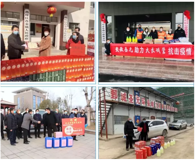 疫情期间,圣元还积极采购物资,为当地防疫工作捐款捐物,践行企业宗旨,担当社会责任。其中江苏圣元在所在地政府部门捐款10万元、庆阳圣元和汶上圣元项目部共捐款10万元,用以支持一线疫情防控工作;郓城圣元捐赠废弃口罩收集专用车1辆以及消毒防护用品若干;其他子公司总捐赠连体防护服220套、医用口罩2400个、双单面皮手套3000双、棉手套750包、护目镜50个、测温枪10支、75度酒精2400升、消毒液500升、84消毒液30箱、洗手液100瓶、7个电动喷雾器和100个手动喷雾器等相关防护物资,助力各地各部门抗击疫情。