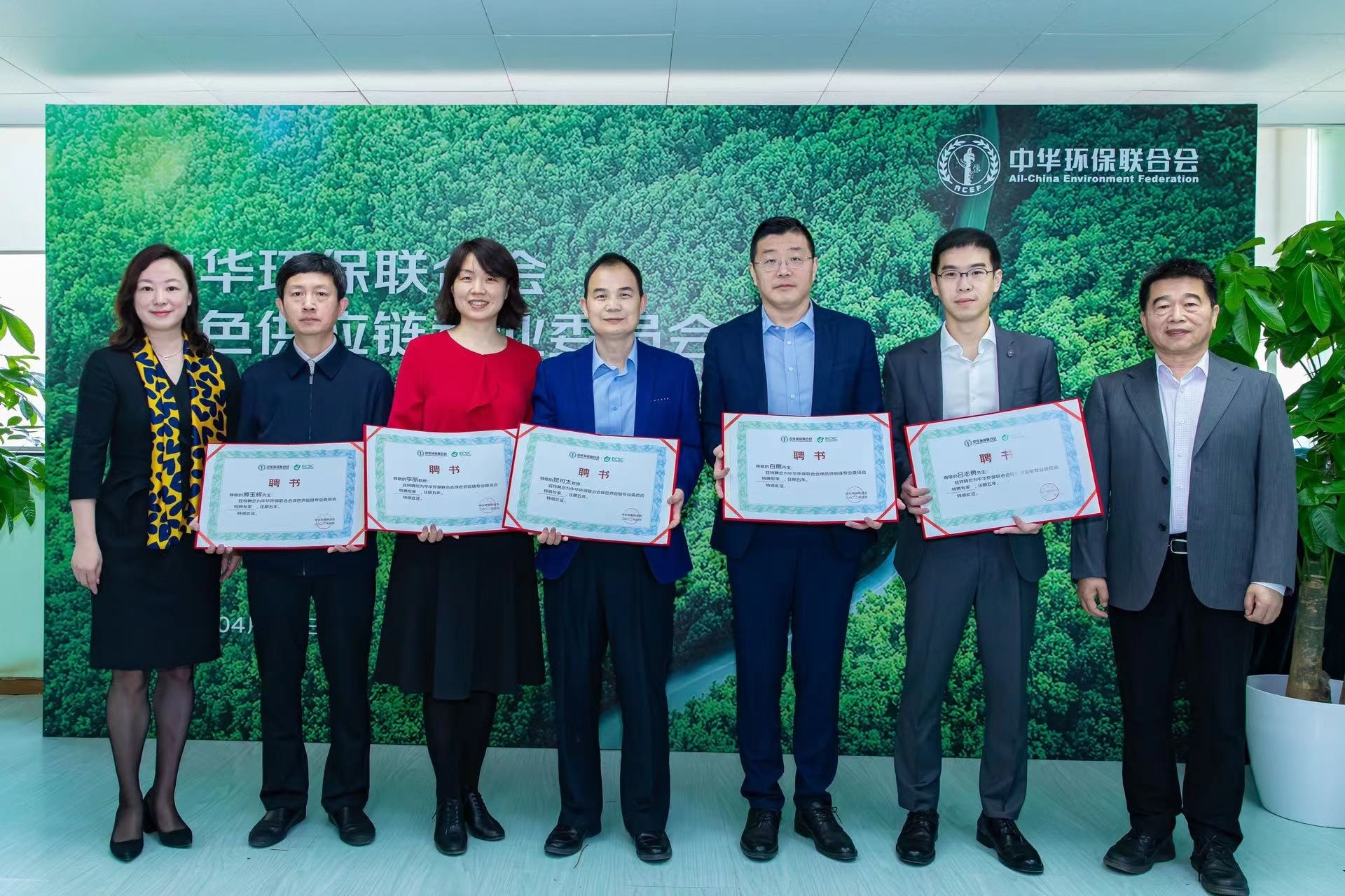 中华环保联合会副主席兼秘书长谢玉红向主任委员杜少中、执行主任委员兼秘书长王颖以及部分副主任委员颁发聘书