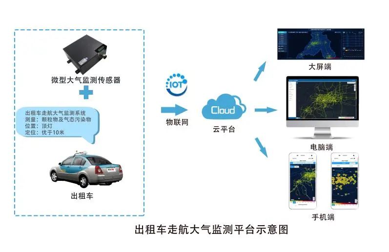 出租车走航大气监测系统为诺方首创,针对目前道路污染监测技术的高成本和时空局限性,围绕创新监测方式、提高传感器性能、降低成本等方面进行了深入研究,将大气监测传感器安装在出租车顶灯上,利用出租车行驶路线随机,行驶范围广的特点,在环境监测领域填补国际空白,使出租车成为监测污染的新平台,构建了低成本、高灵敏度、覆盖面广泛的大气精细化走航体系。