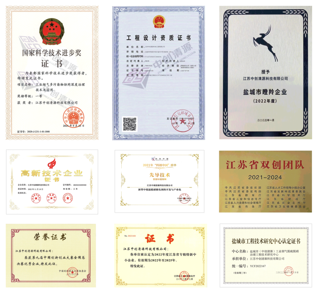 公司先后获批“大气污染防治工程乙级设计资质”、“国家级博士后科研工作站”,荣获“国家高新技术企业”、“科技型中小企业”、“中国创新创业大赛优秀企业”、“江苏省创新创业大赛节能环保行业赛一等奖”、"盐城市瞪羚企业",技术成果入选2021年度“科创中国先导技术榜单”,2020年度“国家科学技术进步奖一等奖”等荣誉称号。团队入选“江苏省双创团队”、“2023年盐城市优秀科技创新团队”,团队成员先后入选“国家万人计划-科技创业领军人才”、“江苏省双创人才”、“江苏省333工程高层次人才”、“盐城市领军人才”、“苏北紧缺人才”等。