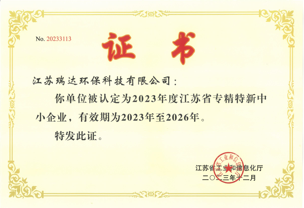 “专精特新中小企业”是指具备专业化、精细化、特色化、新颖化特征的中小企业,是科技含量高、设备工艺先进、管理体系完善、市场竞争力强的企业,是加快壮大工业高质量发展的生力军,同时也是区域经济实现创新发展的新引擎。此次被认定为江苏省专精特新中小企业,是对瑞达科技规模效益、技术实力、研发能力以及管理能力等综合实力的充分肯定。