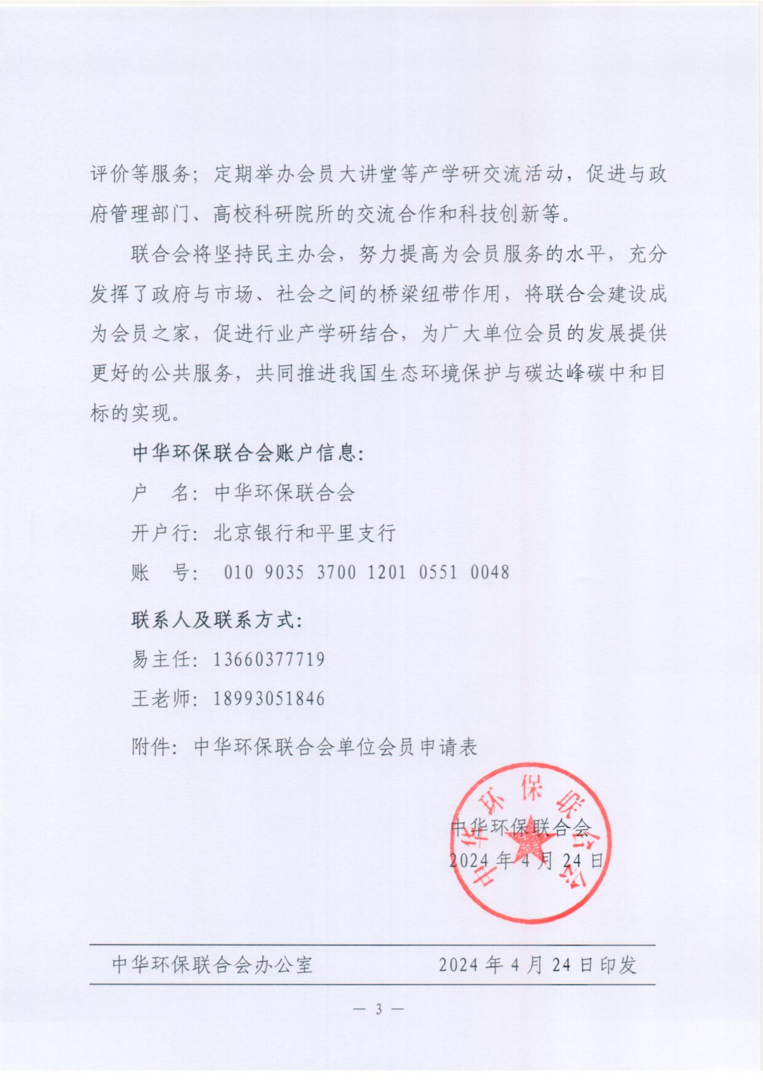 关于邀请加入中华环保联合会单位会员的函
