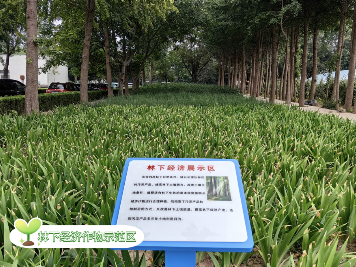 林下经济作物示范区:是对污泥产品在林下经济这一重要方向的集中展示,探索污泥产品在林农、林经、林药、林草、林花等多形式利用场景,实现林下土地资源的充分利用,为污泥产品在北京平原林利用提供新模式。展示区采用银杏林下间方式,种植紫苏、薄荷等经济作物,并分别对不同污泥产品施用梯度进行展示。