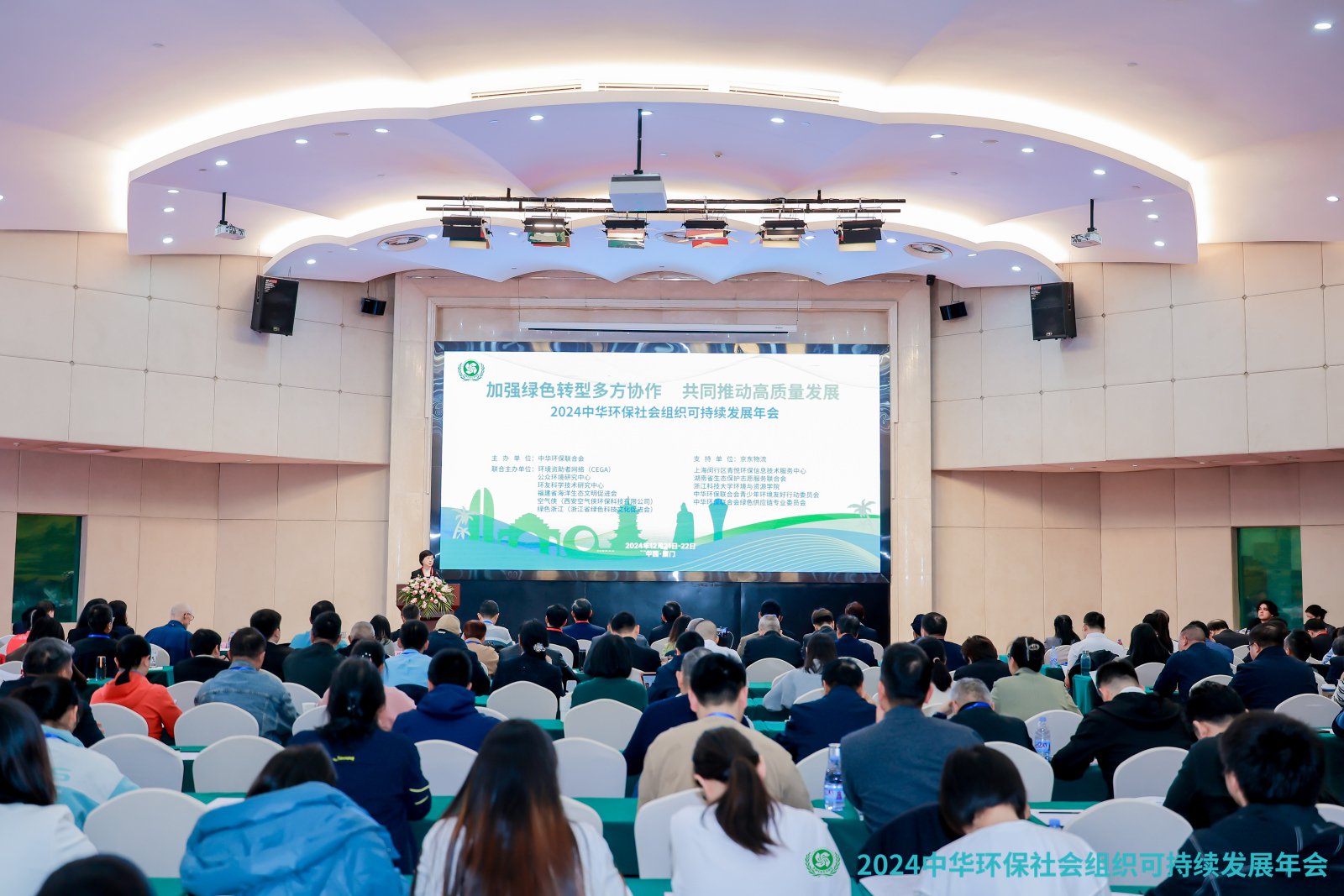 12月21日、22日,2024中华环保社会组织可持续发展年会(以下简称年会)在厦门召开。本届年会以“加强绿色转型多方协作,共同推动高质量发展”为主题,以习近平新时代中国特色社会主义思想特别是习近平生态文明思想为指导,深入贯彻党的二十大和二十届二中、三中全会精神,总结环保社会组织一年来开展工作的成效与经验,共同交流探讨新时代环保社会组织如何有效的参与生态文明建设,如何更好的发挥桥梁纽带作用和广泛动员作用,调动社会多元力量,助力经济社会发展全面绿色转型,推动高质量发展。