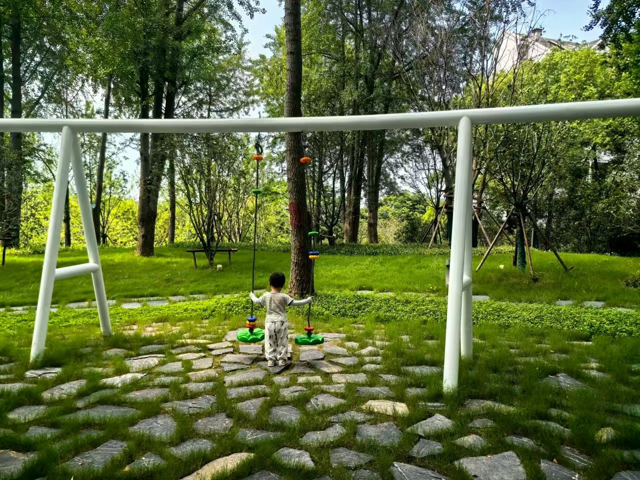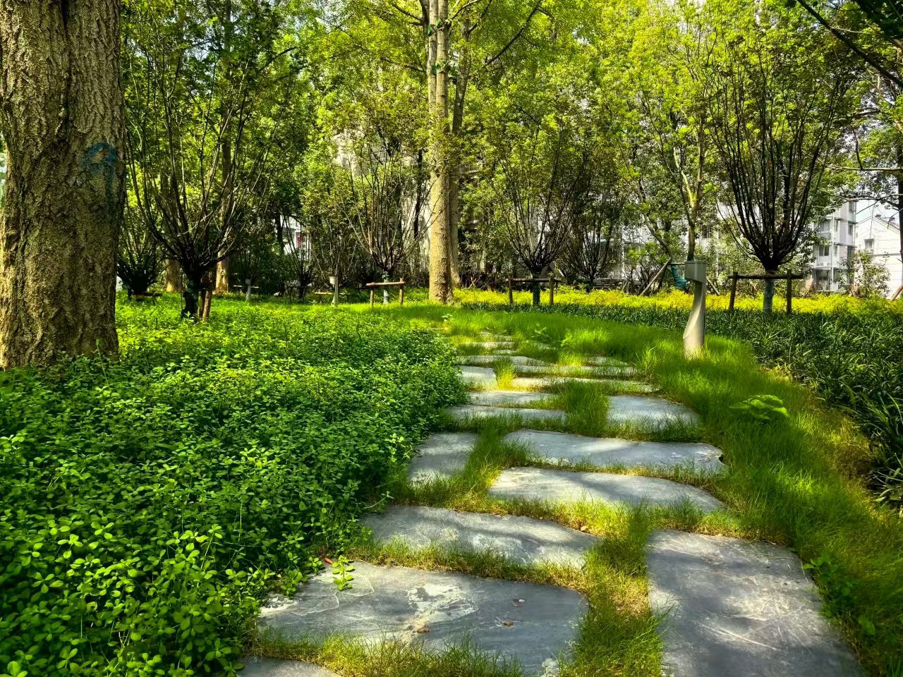 树下新设的秋千架上附近居民正陪伴孙女嬉戏:“以前这次全是杂树荒草,无从下脚现如今不仅有高大的水杉还种了樱花、杜鹃就像是把公园搬到了家门口我们时不时就想来散散步感觉到很幸福。”