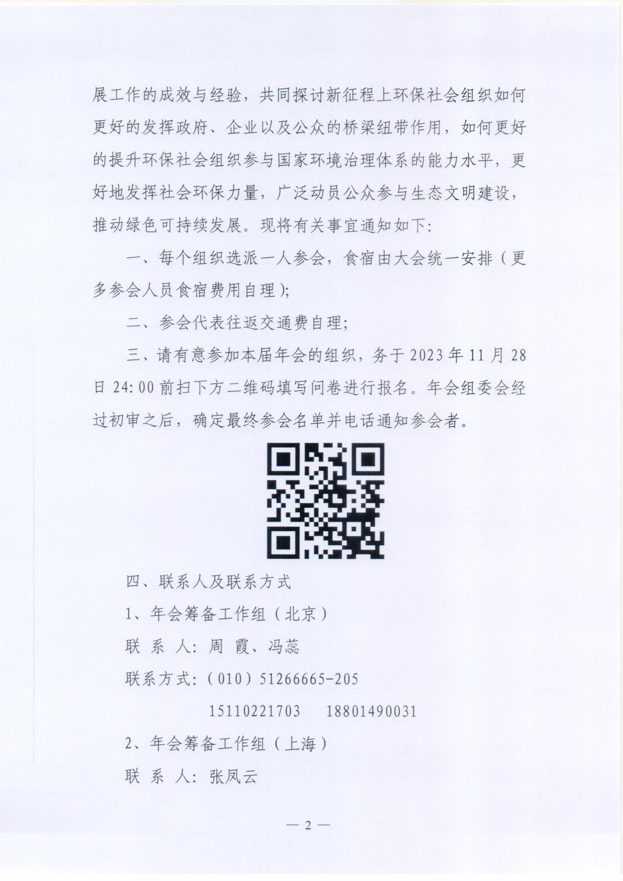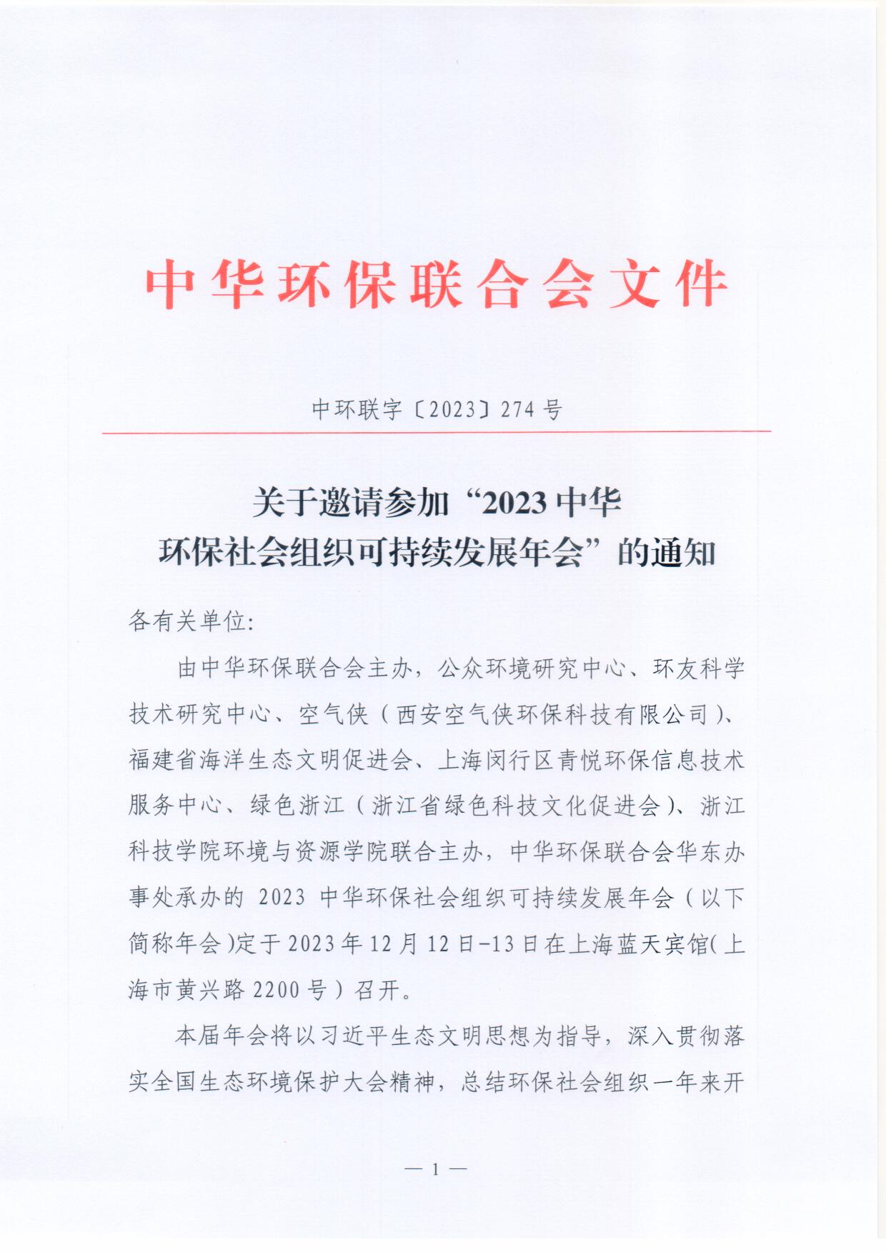 关于邀请参加“2023中华环保社会组织可持续发展年会”的通知