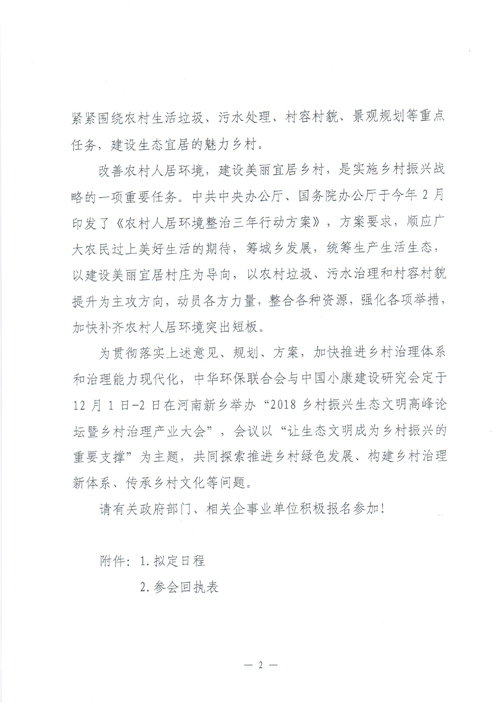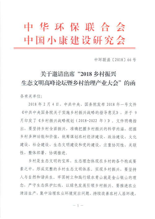 关于邀请出席“2018乡村振兴生态文明高峰论坛暨乡村治理产业大会”的函