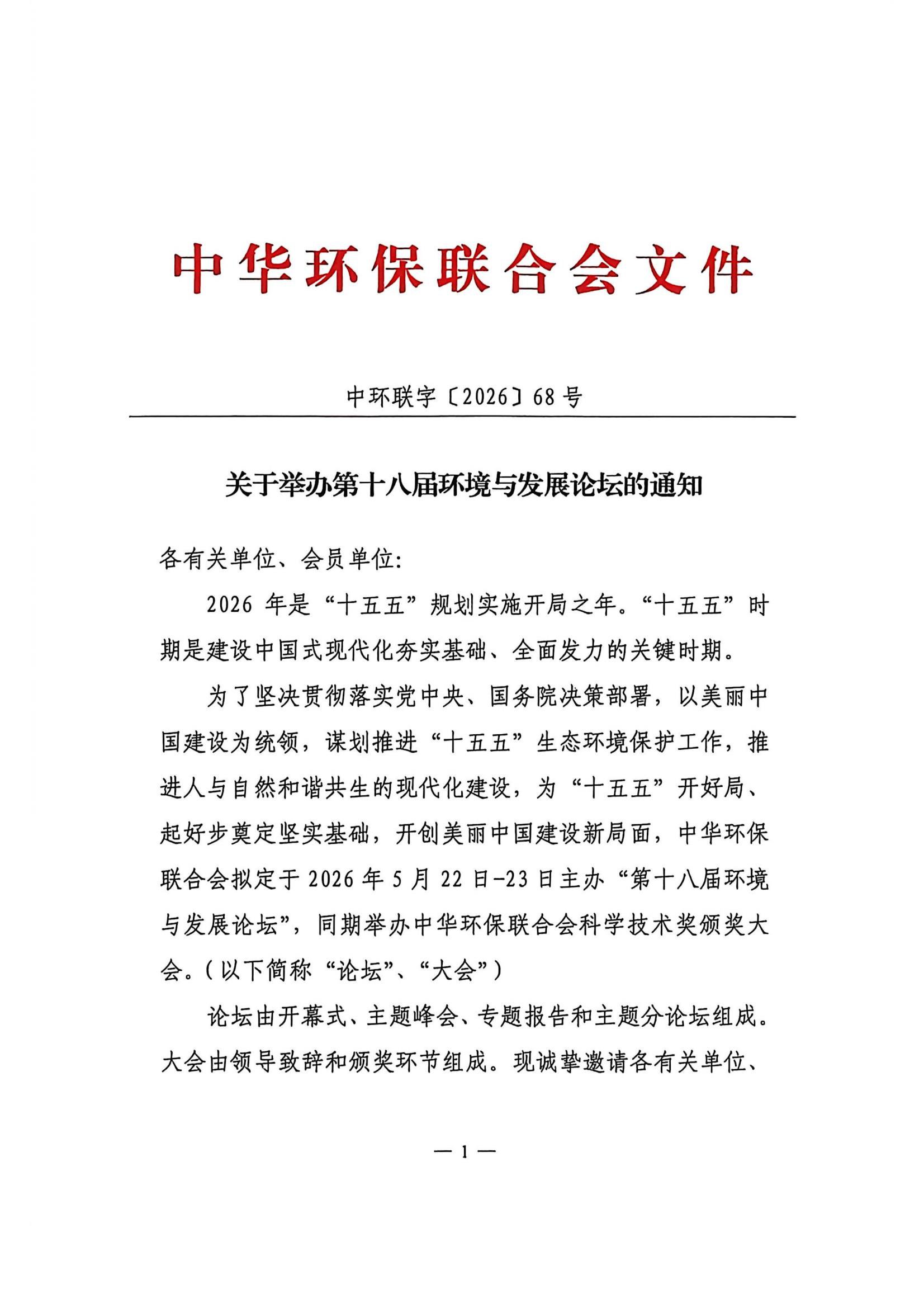 关于举办第十八届环境与发展论坛的通知