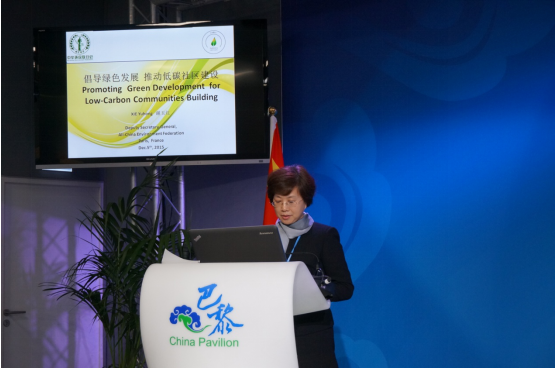 谢玉红副秘书长在中国角边会发表“倡导绿色发展,推动低碳社区建设”讲话
