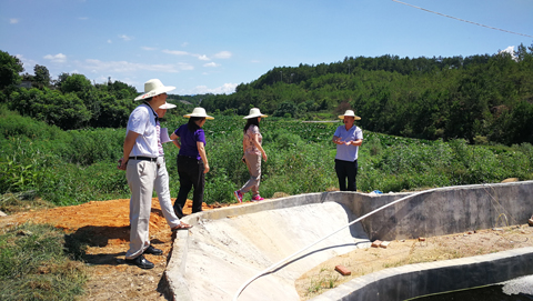 专家实地走访养殖基地粪污处理工程,查看净化后水样