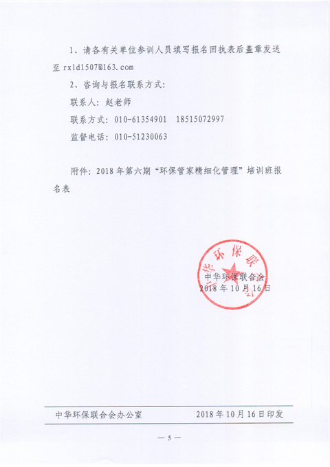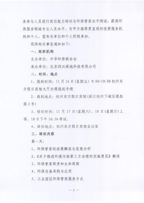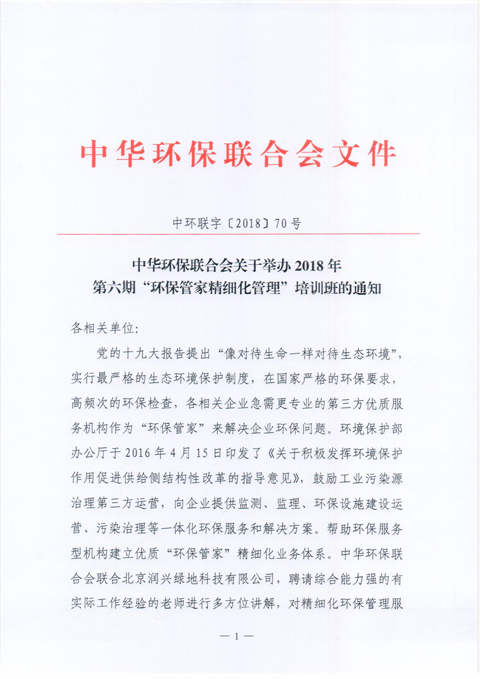 关于举办2018年第六期环保管家精细化管理培训班的通知
