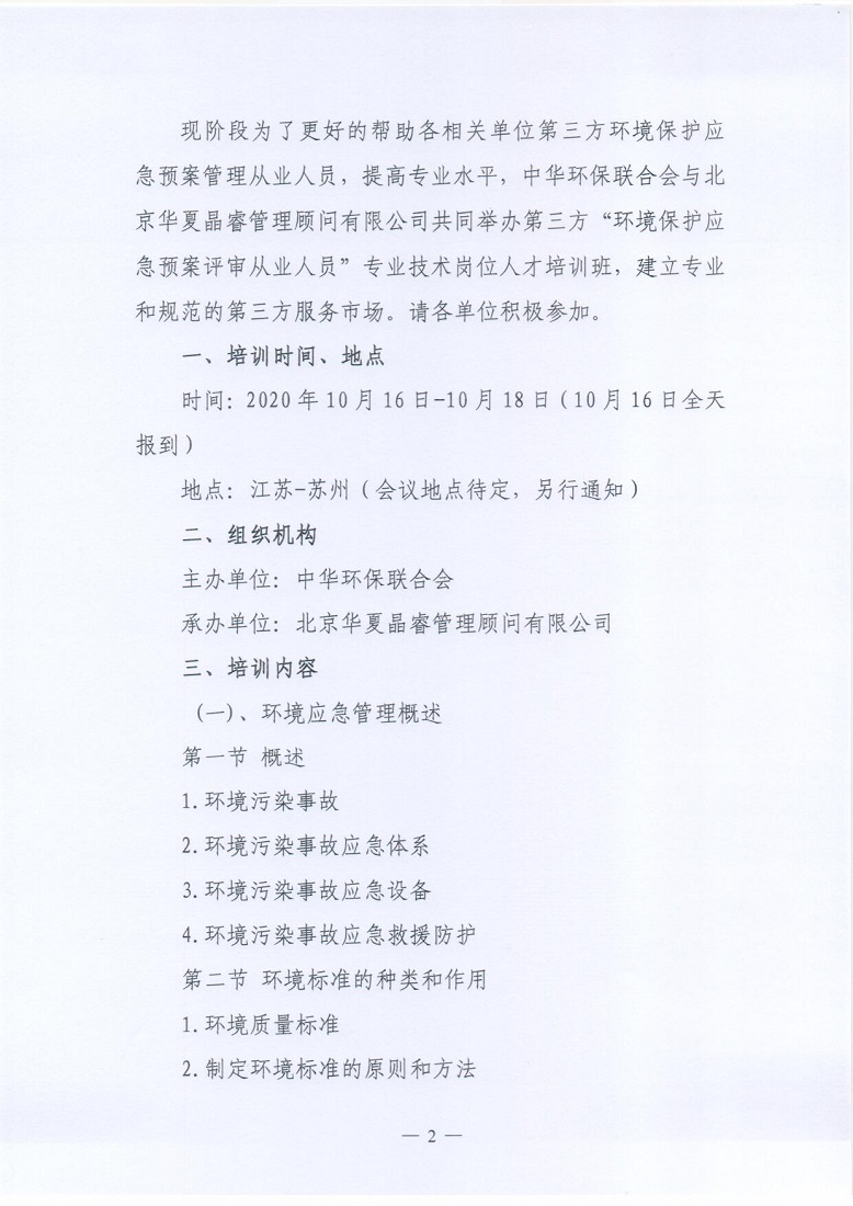 关于举办2020年第一期第三方“环境保护应急预案评审从业人员”专业技术岗位人才培训班的通知