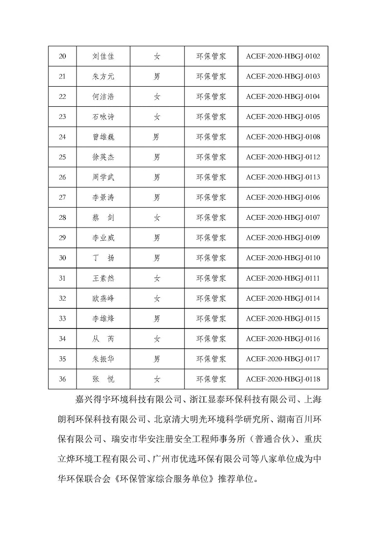 2020年第四期环保管家生态环境服务产业创新升级培训合格学员公示名单