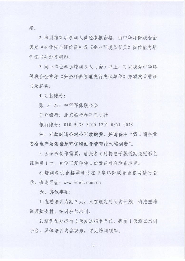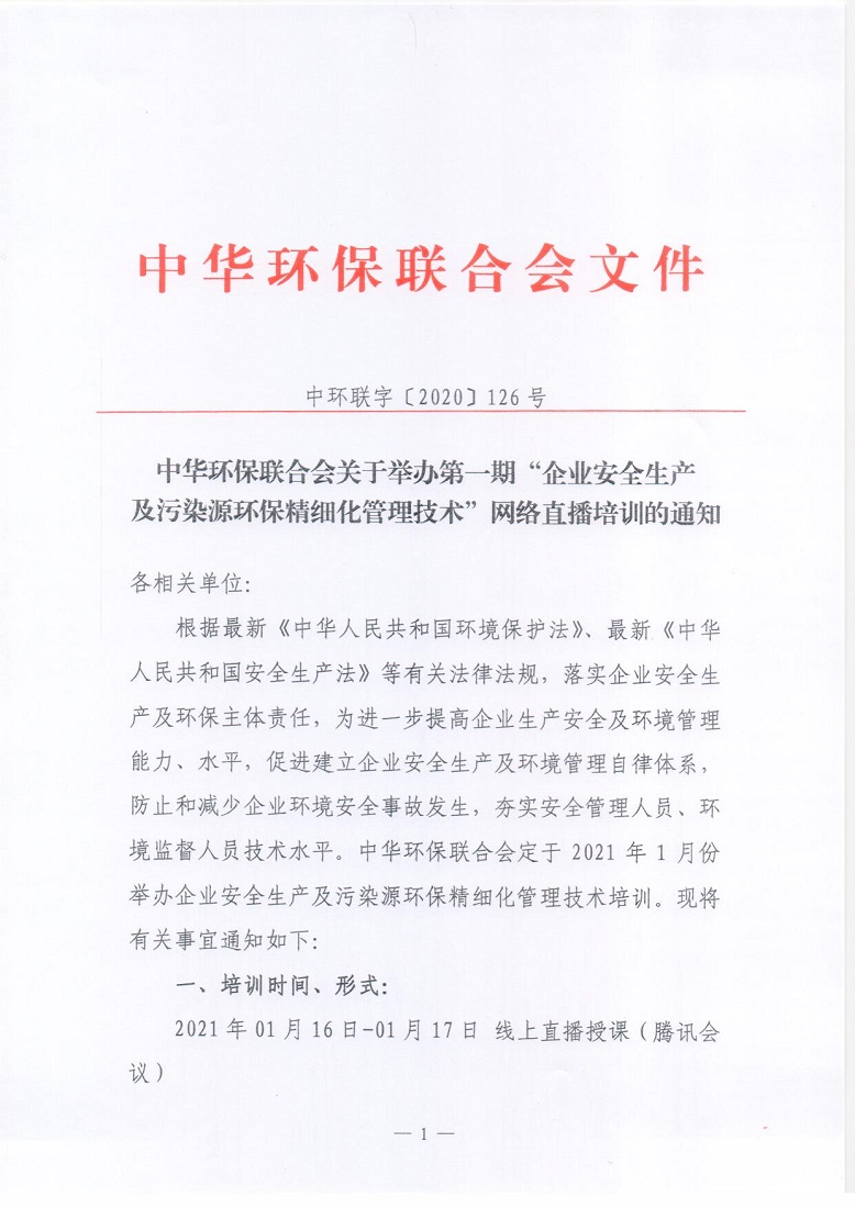 关于举办第一期 “企业安全生产及污染源环保精细化管理技术” 网络直播培训通知