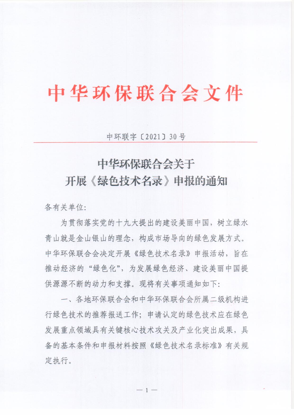关于开展《绿色技术名录》申报的通知