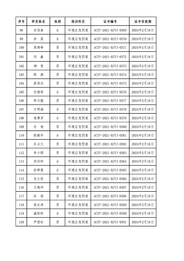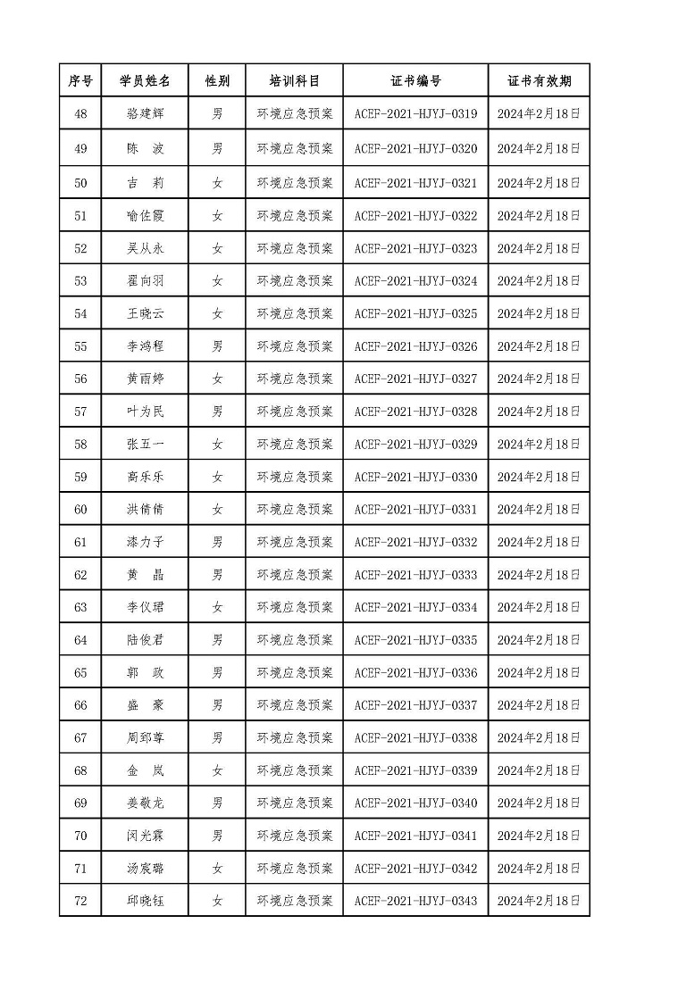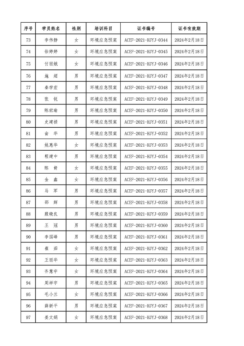 2021年第2期“环境应急预案编制及评审从业人员” 专业技术岗位人才培训合格学员名单