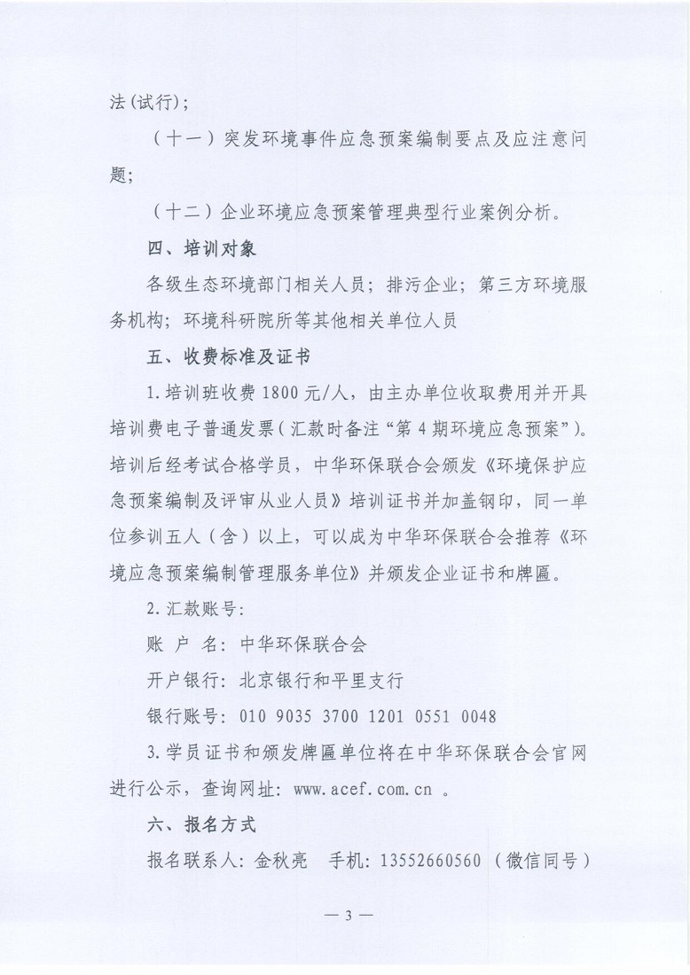 关于举办2021年第4期“环境应急预案编制及评审从业人员”专业技术岗位人才培训班的通知