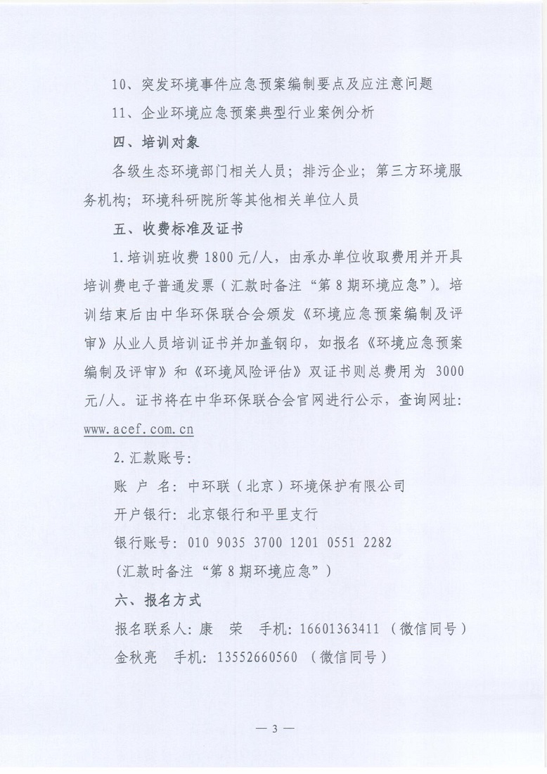 关于举办2021年第8期环境应急预案编制与评审从业人员培训班的通知