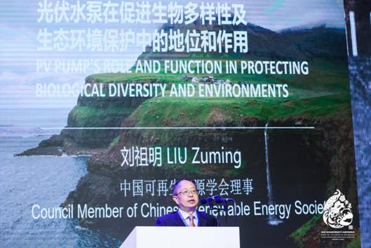随后全球能源互联网发展合作组织副秘书长程志强与中国可再生能源学会理事刘祖明,分别从宏观的能源体系建设和微观的光伏提水案例,阐释了可持续能源领域如何助力生物多样性保护。程志强副秘书长还着重分享了机构研究并出版发行的、世界首部能源视角分析解决生物多样性问题的著作——《生物多样性与能源电力革命》。