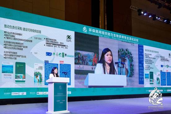 专题分享环节由中华环保联合会国际部副部长倪垚主持,邀请了从事生态保护、可持续能源、污染防治和综合性议题四大领域的环保非政府组织,分享了他们各自推动生物多样性保护的前沿观点。