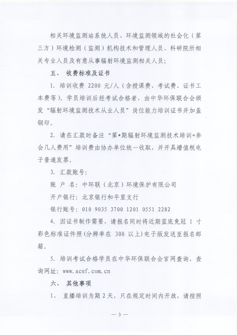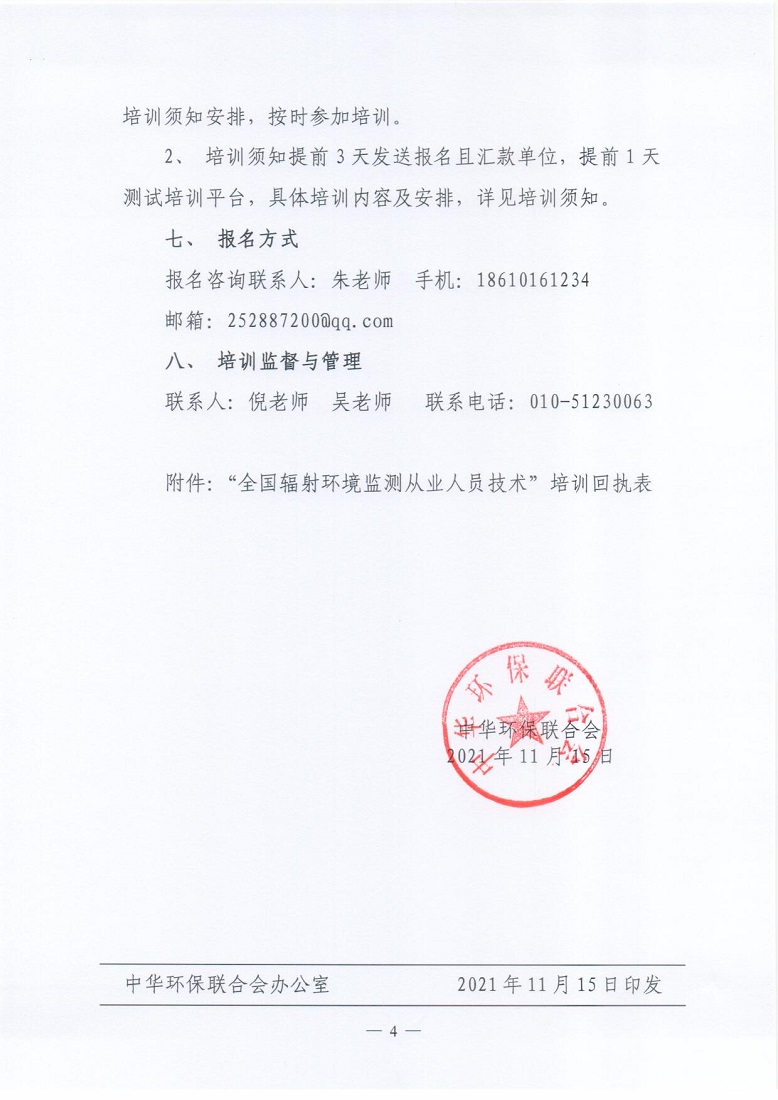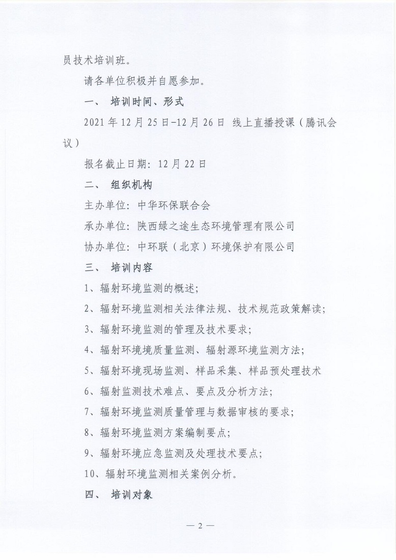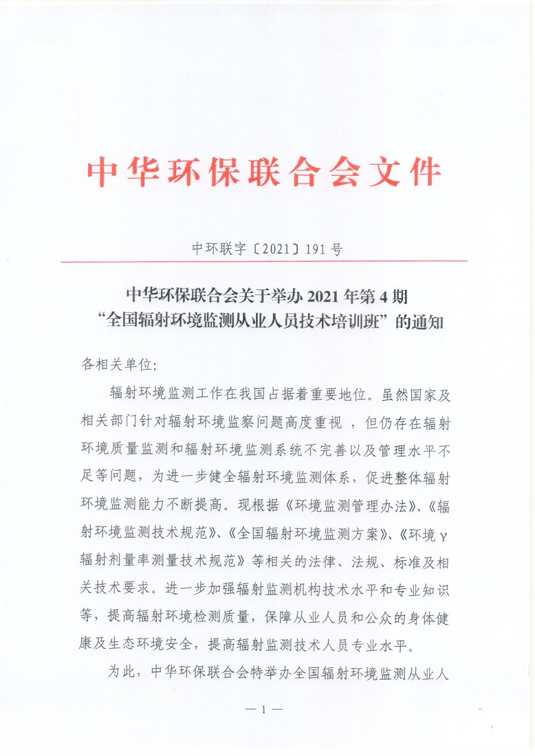 关于举办2021年第4期“全国辐射环境监测从业人员技术培训班”的通知