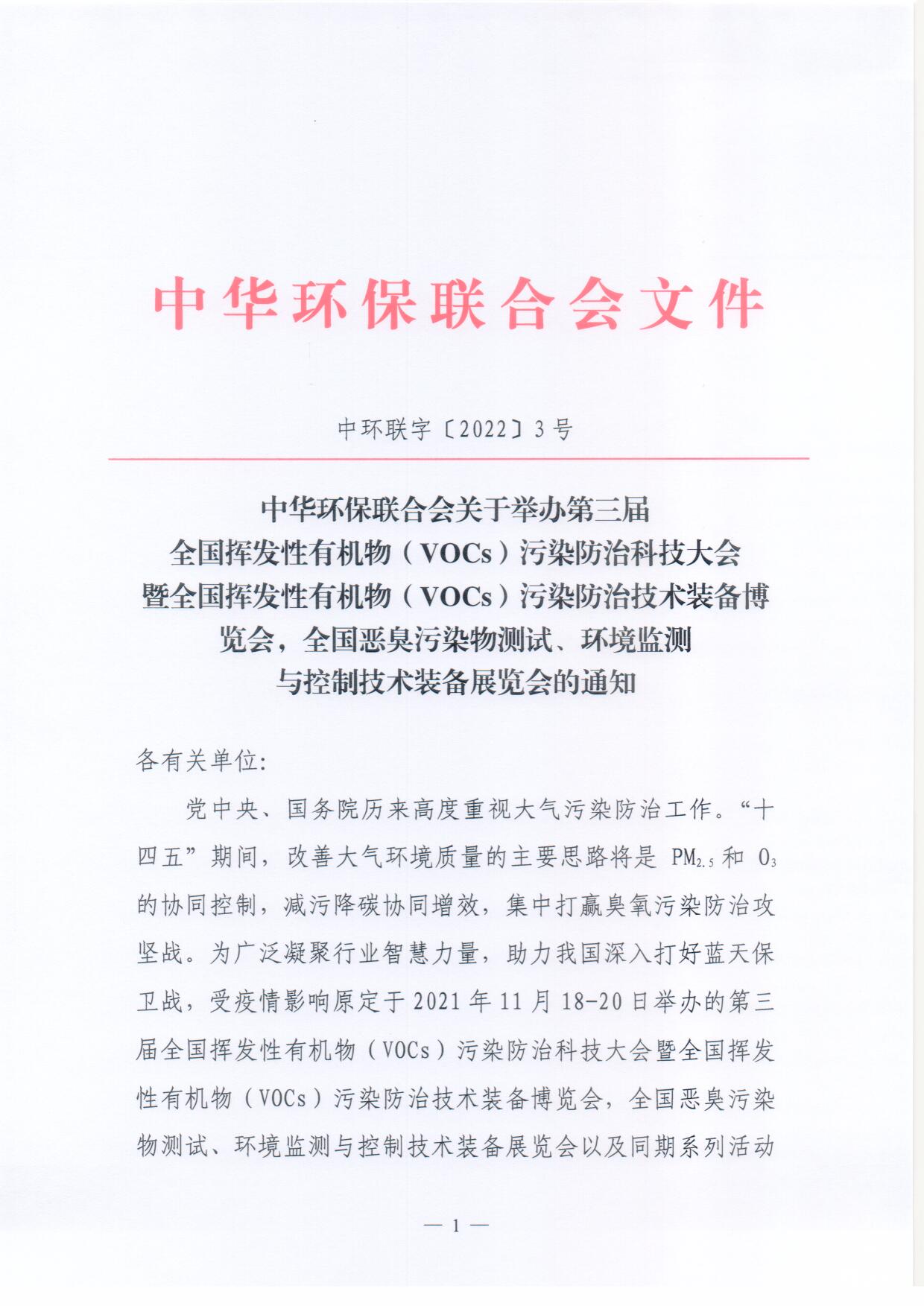 关于举办第三届全国挥发性有机物(VOCs)污染防治科技大会暨全国挥发性有机物(VOCs)污染防治技术装备博览会,全国恶臭污染物测试、环境监测与控制技术装备展览会的通知