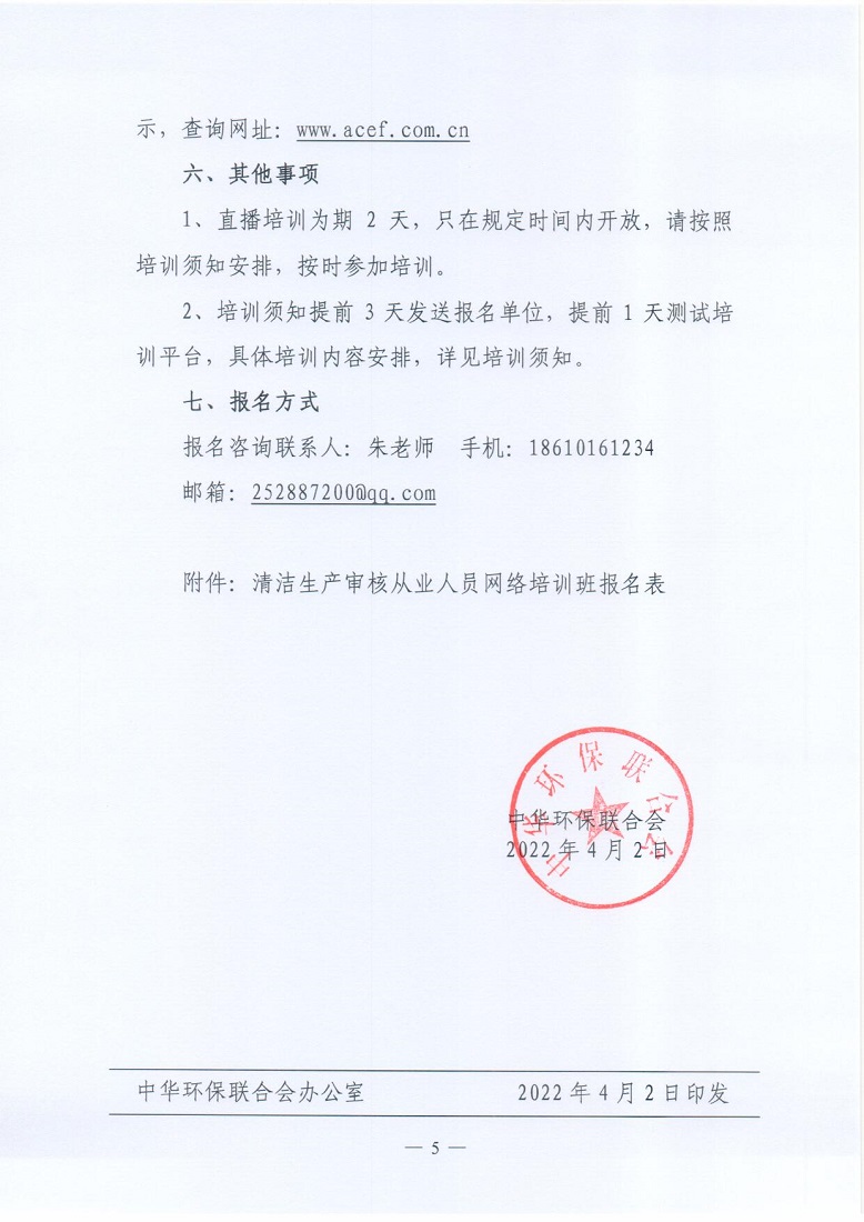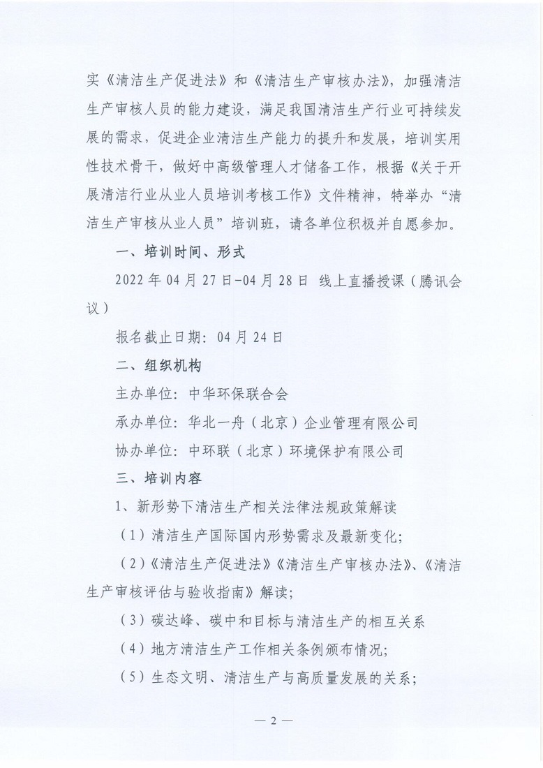 关于举办2022年第6期“清洁生产审核从业人员”培训的通知