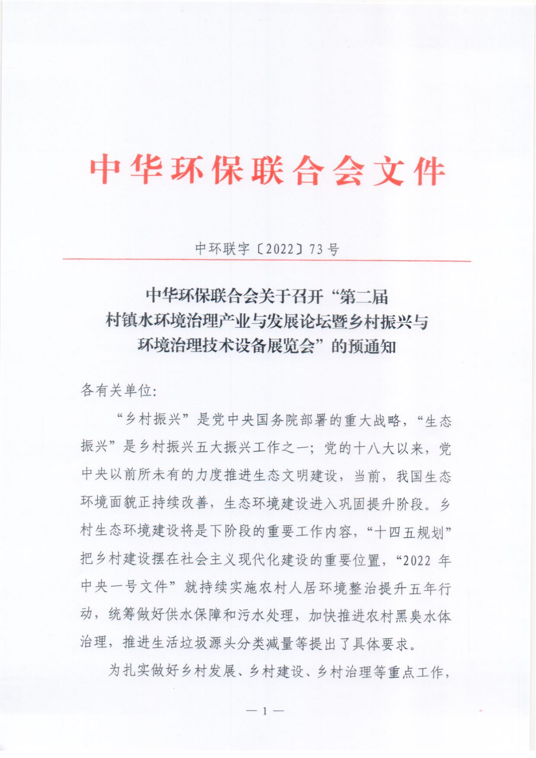 关于召开“第二届村镇水环境治理产业与发展论坛暨乡村振兴与环境治理技术设备展览会”的预通知