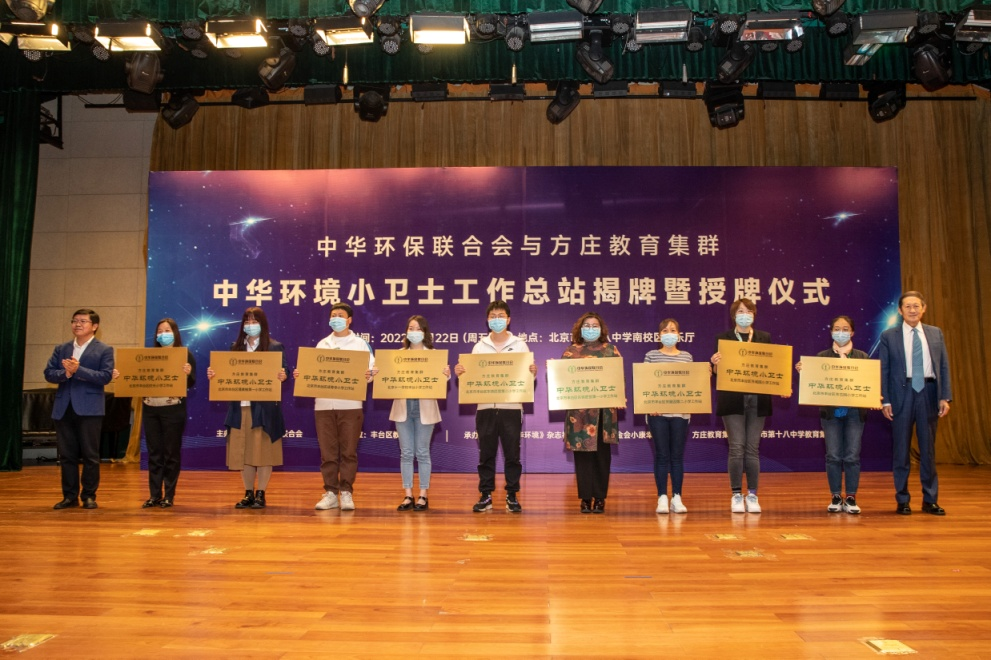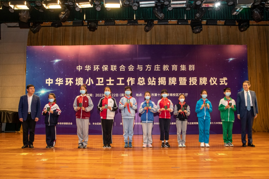“中华环境小卫士工作总结站揭牌暨授牌仪式”由中华环保联会会主办,北京市丰台区教育委员会作为支持单位全程参与了今天的活动,承办单位是《中华环境》杂志社、中华环境保护基金会小康幸福工程办公室、北京市方庄教育集群以及北京市第十八中学教育集团。